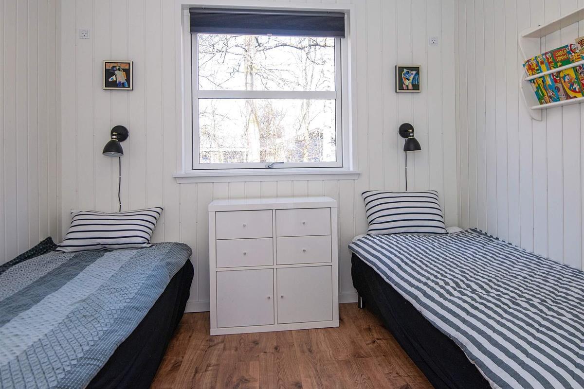 Das moderne Ferienhaus bietet ein wohnliches Ambiente zum Wohlfühlen, wozu auch der Kaminofen für kühlere Abende beiträgt. Es stehen drei gute Schlafzimmer mit jeweils zwei Schlafplätzen in Betten bereit, zudem gibt es oben unter der Dachschräge einen offenen Hems mit vier weiteren Schlafplätzen. Außerdem zwei Bäder und eine geräumige Küche im Haus, die direkt in den Wohnbereich integriert ist, damit man beim Kochen auch am Familienleben dort teilnehmen kann.