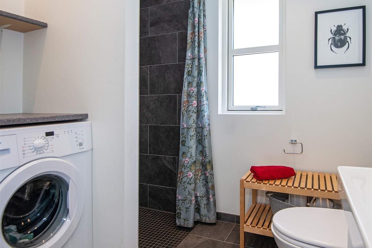 Bad: Waschm., WC, Waschb., Dusche, Fußbodenheiz.