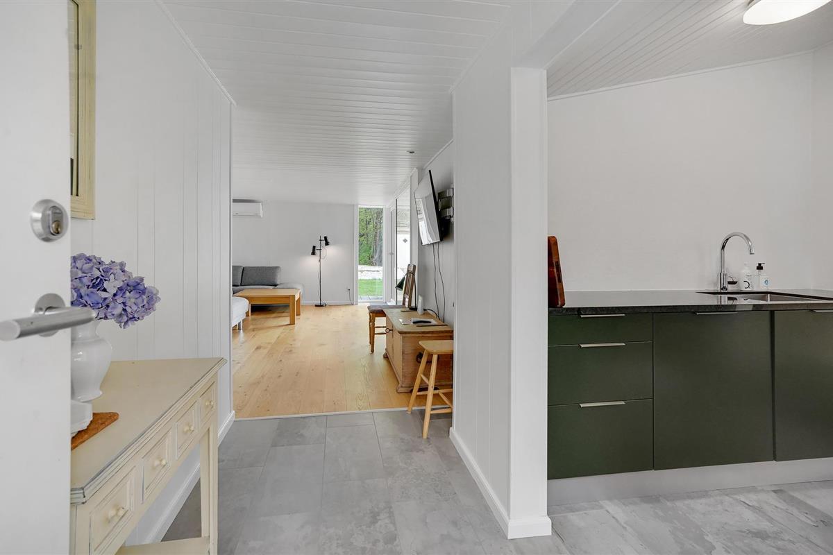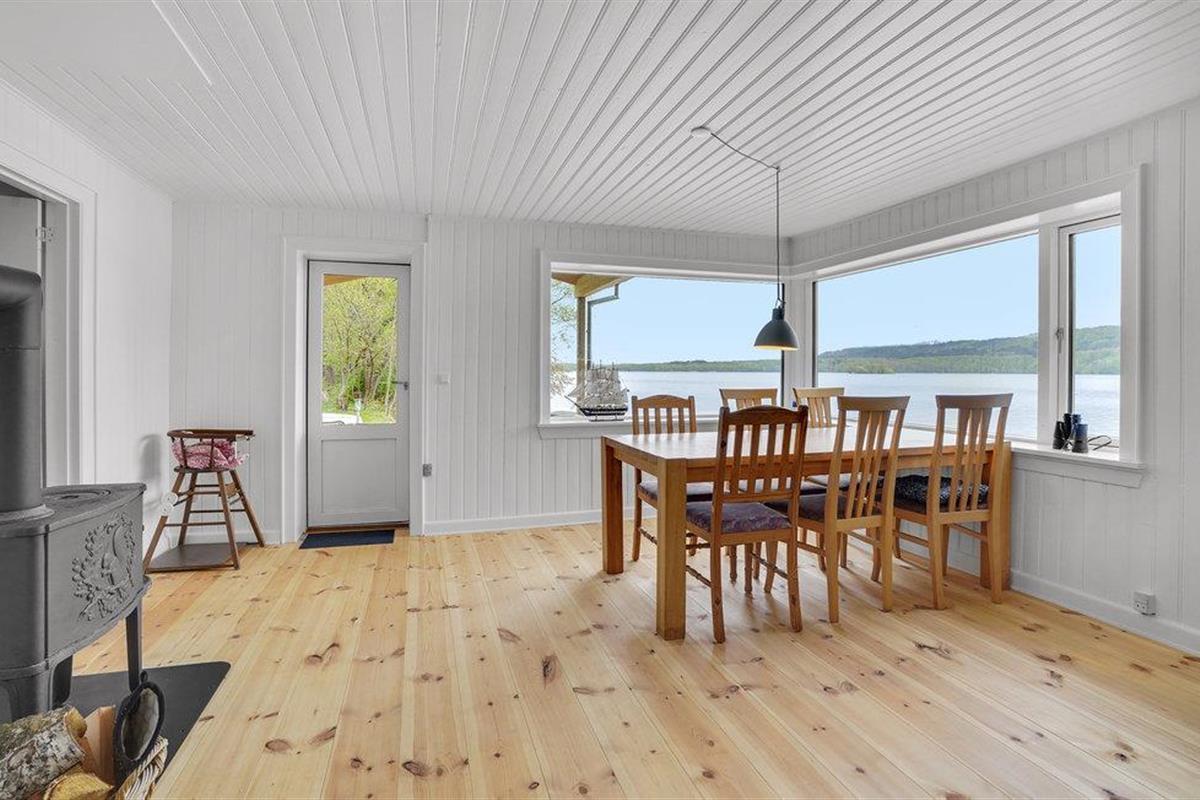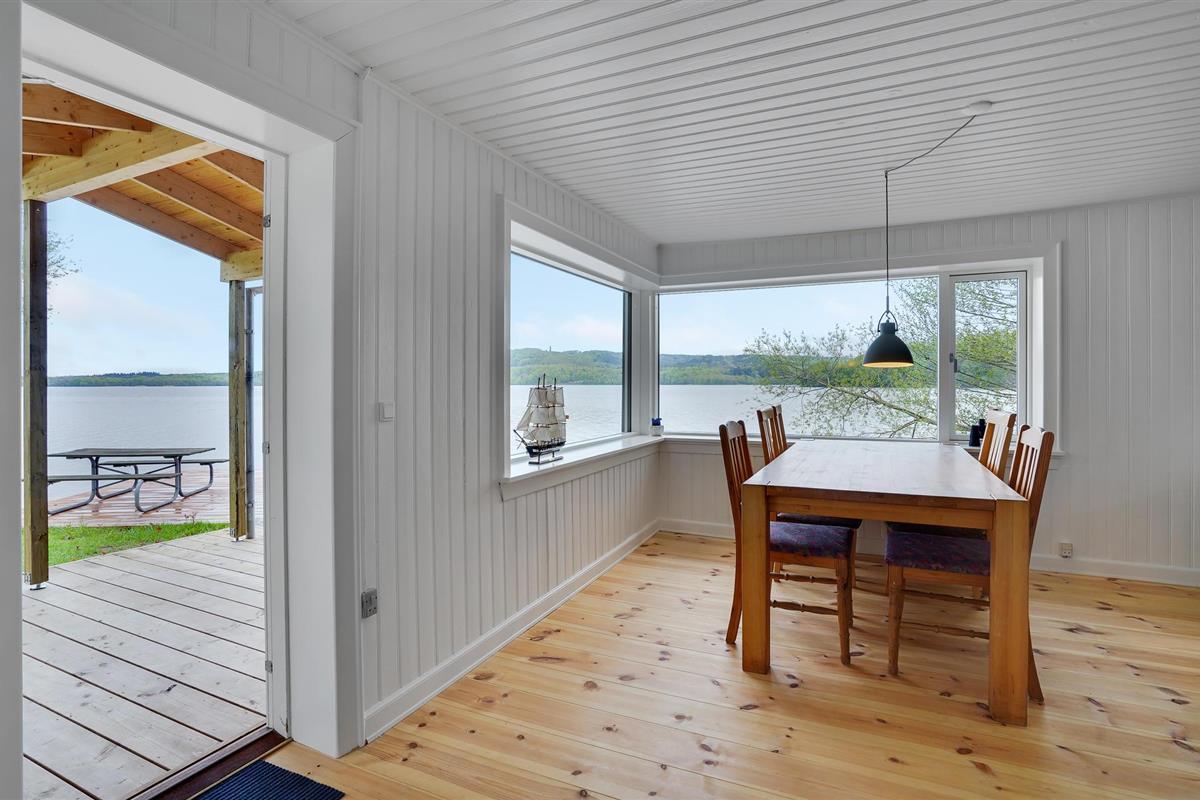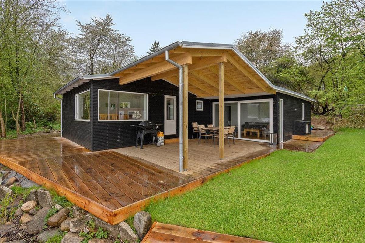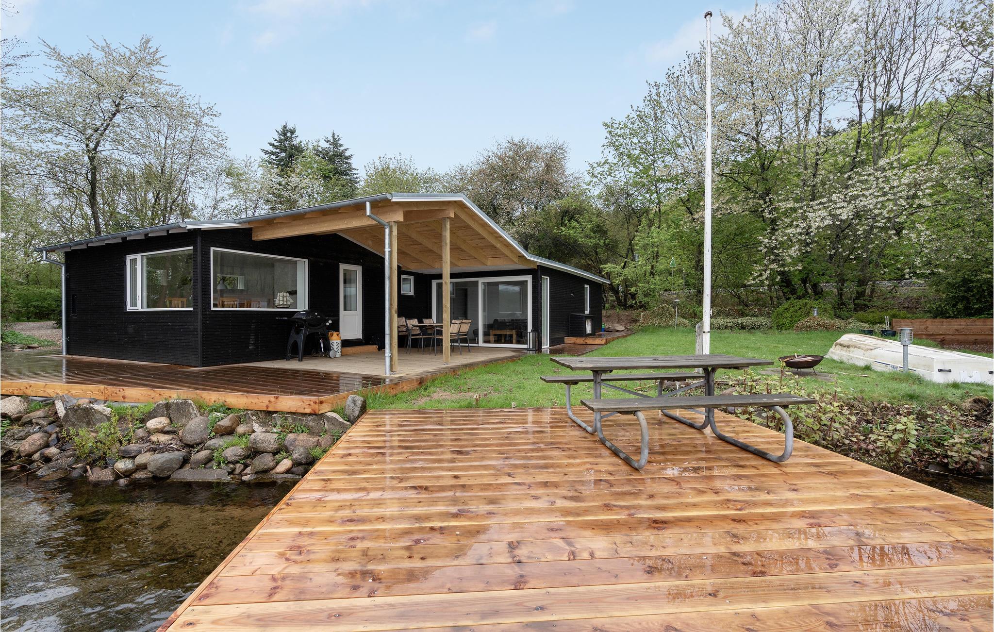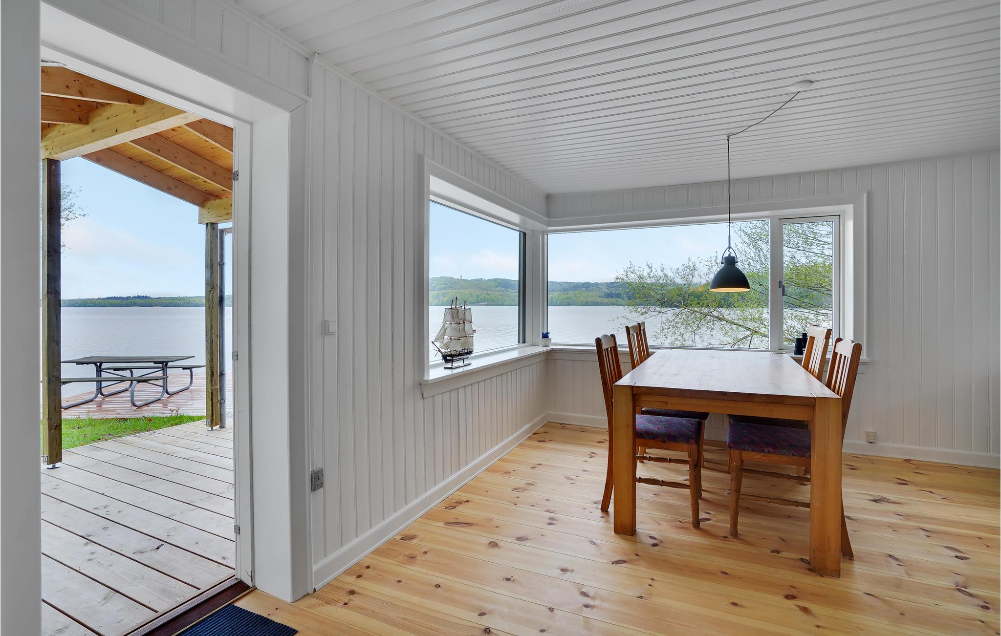 Het huisje ligt direct aan Julsø, dus het meer is slechts een stap verwijderd van een van de terrassen.