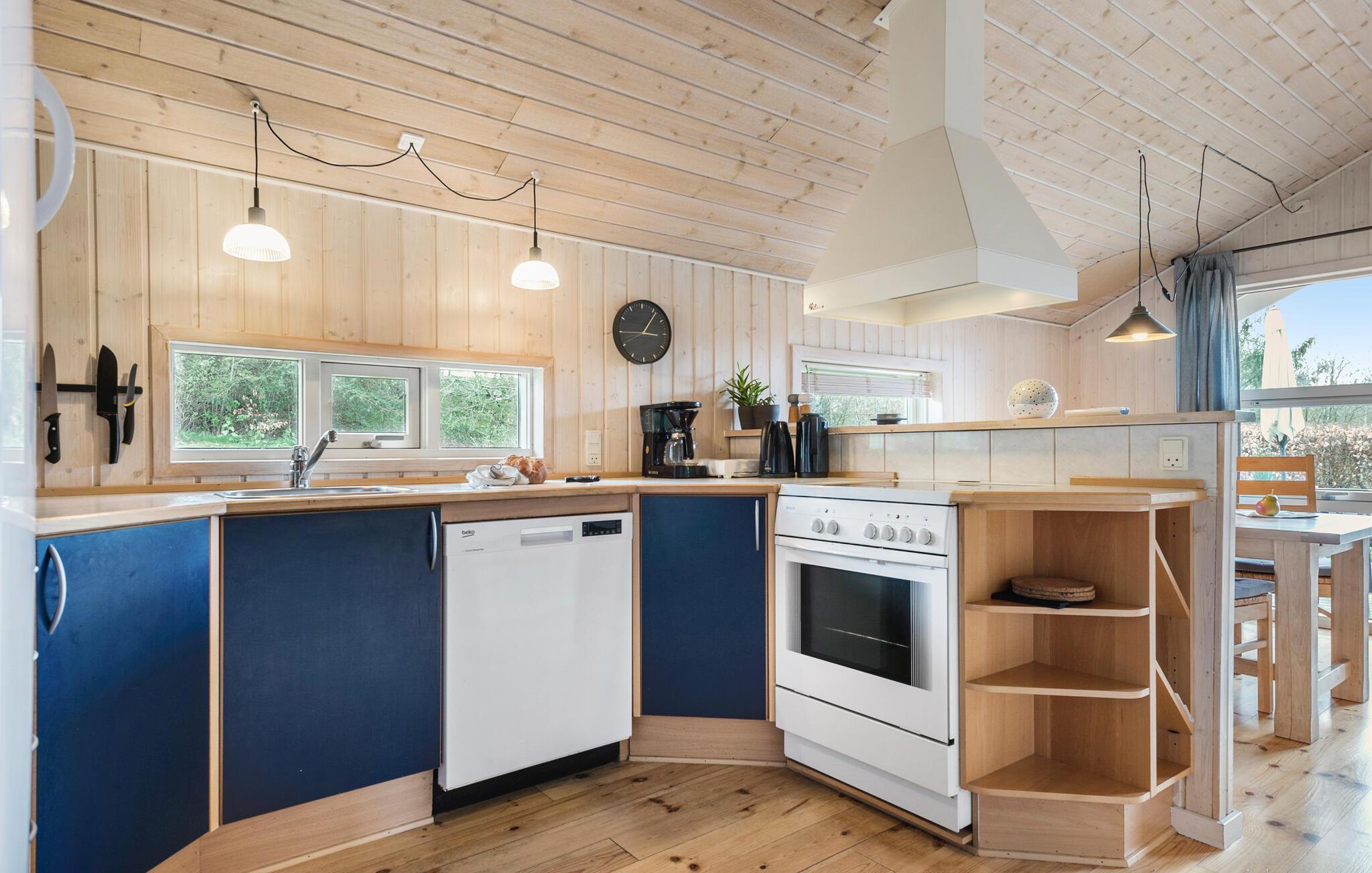 Begin je dag langzaam en gezellig. Zet 's ochtends een kopje koffie en maak een heerlijk ontbijt klaar voor je gezin. Serveer het aan de aangrenzende eettafel, waar de eerste ideeën voor vakantieactiviteiten waarschijnlijk al worden besproken. De woonruimte straalt rust uit en nodigt je uit om te ontspannen. Er is plaats voor iedereen op de ruime bank als je een film wilt kijken of bordspelletjes wilt spelen. Je kunt je ook buiten vermaken. Kijk hoe je kinderen rondrennen op het grasveld terwijl jij ontspant op het terras, of speel samen leuke balspelletjes.