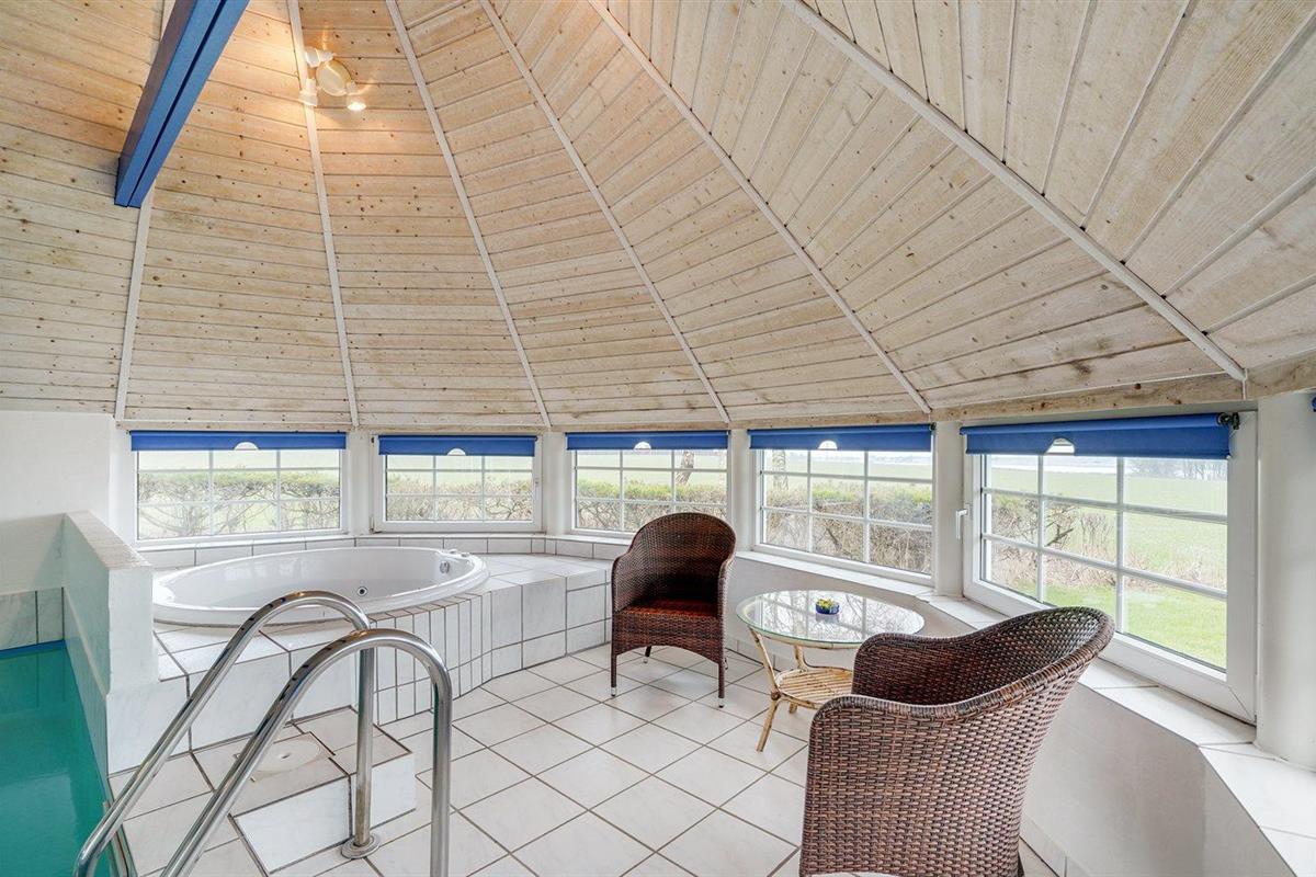 Het binnenbubbelbad (vulwater) biedt ontspanning aan 4 personen.