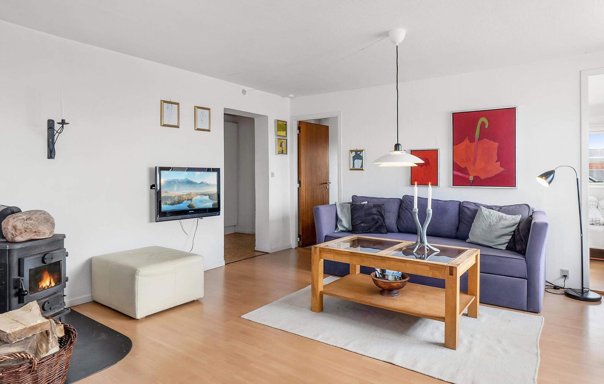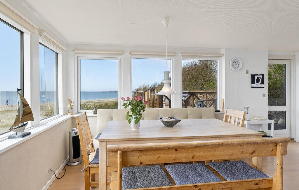 Beleef rustige dagen in je vakantiehuis, dat ideaal is voor ontspannende uren met het gezin. Direct aan het strand gelegen, kun je genieten van een open sfeer met een prachtig uitzicht op de fjord. Stap binnen in de smaakvol ingerichte woonkamer met houtkachel, gezellige zithoek en tv, ideaal om tot rust te komen na een actieve dag. De grote eethoek is het middelpunt van het huis. Hier wordt elke maaltijd een belevenis met een panoramisch uitzicht op het water.
