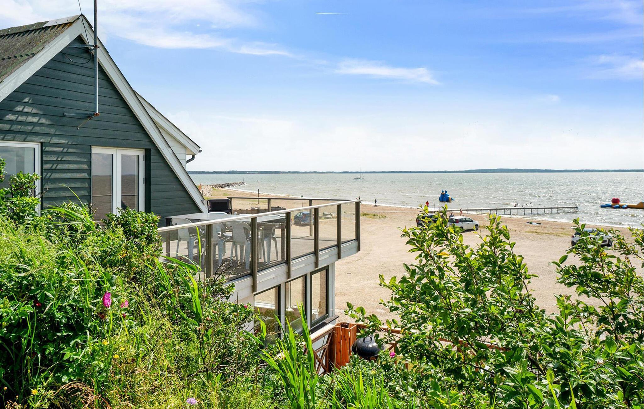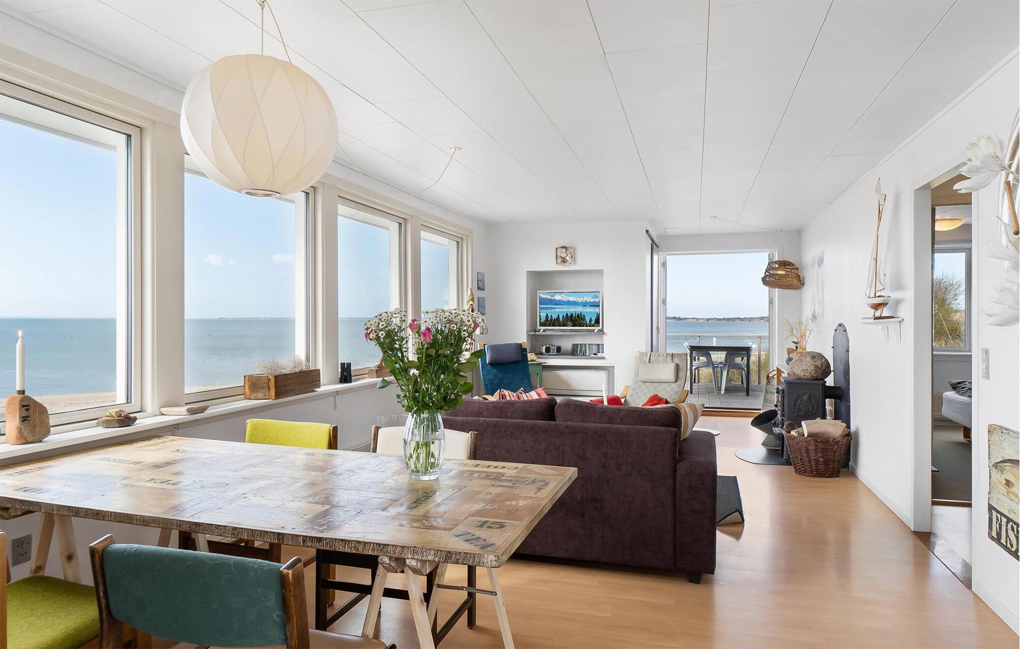 Gezellig vakantiehuis direct aan het water met panoramisch uitzicht op de Limfjord en eigen terras voor ontspannen momenten.