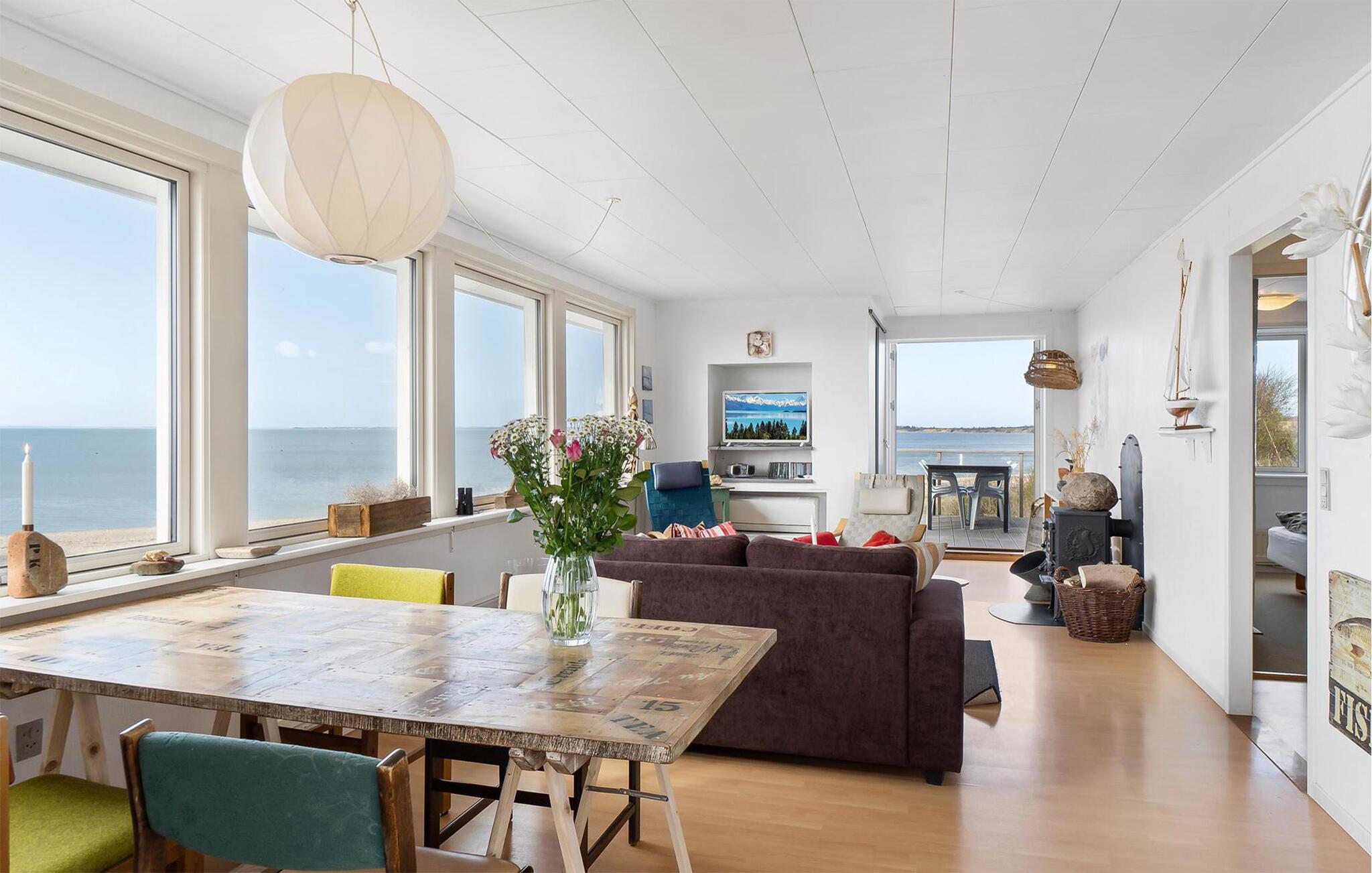 Je charmante vakantiehuis biedt je de ideale plek voor een ontspannen vakantie. De rustige ligging direct aan het strand creëert de beste voorwaarden voor ontspannende uren met het gezin. Laat je blik over het water dwalen en kom tot rust. De woonkamer verwelkomt je met gezellige banken, een verwarmende houtkachel en tv, ideaal voor rustige avonden. Aan de ruime eettafel wordt elke maaltijd vergezeld door het fantastische uitzicht.