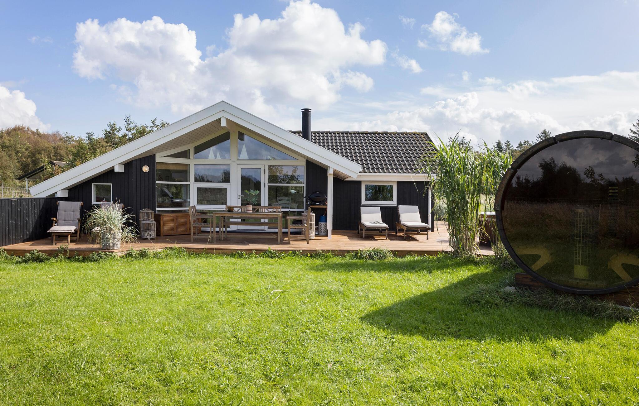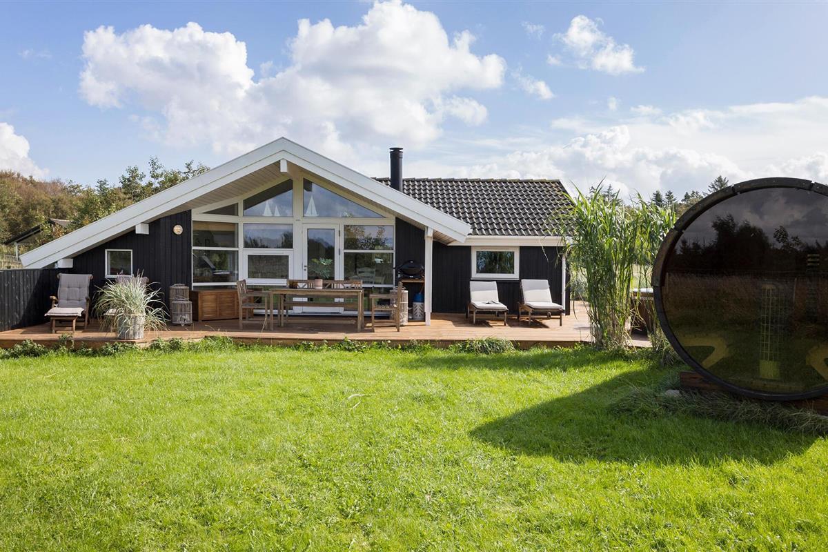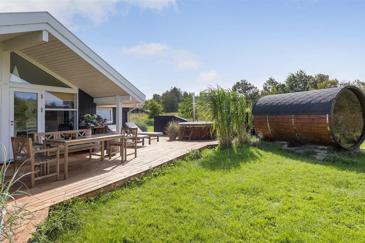 Maar de buitenruimte is misschien wel het hoogtepunt van het huis - naast het mooie terras met hoogwaardig tuinmeubilair vindt u hier zowel een Fins houten bad als een sauna. De Limfjord en het zandstrand liggen op slechts 450 m afstand en bieden geweldige zwemmogelijkheden - voor de frissers natuurlijk, het hele jaar door en met de mogelijkheid om daarna naar de sauna te gaan.