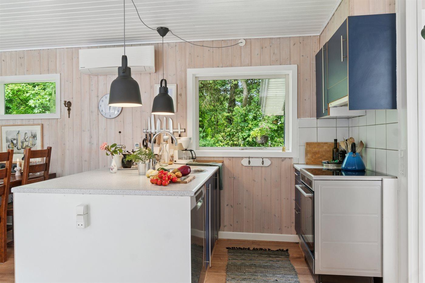 De keuken is uitgerust met koelkast Er is 4 inductiekookplaten, heteluchtoven, magnetron en vaatwasser.