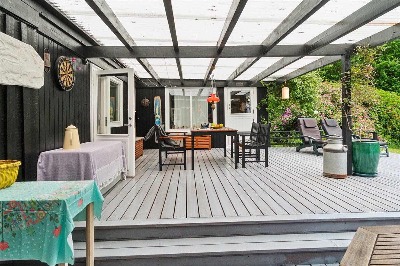 De vakantiewoning is gelegen op een 3080 m² groot aangelegde tuin. Afstand tot de zee 100 m. Dichtstbijzijnde winkel 3650 m. Er is een golfbaan op een afstand van 8600 m. Bij de vakantiewoning hoort 60 m² terras. Daarnaast is er een 30 m² groot overdekt terras.Vuurplaats. Barbecue. Parkeerplaats bij het huis.