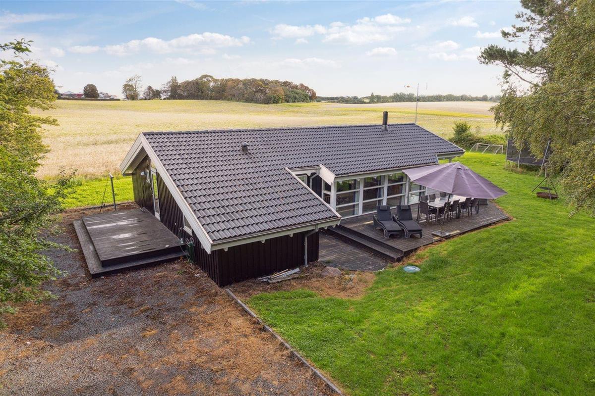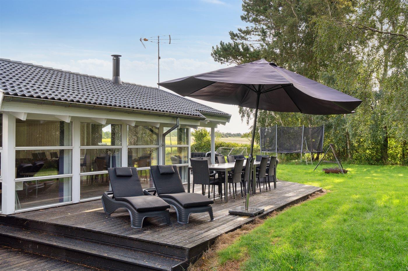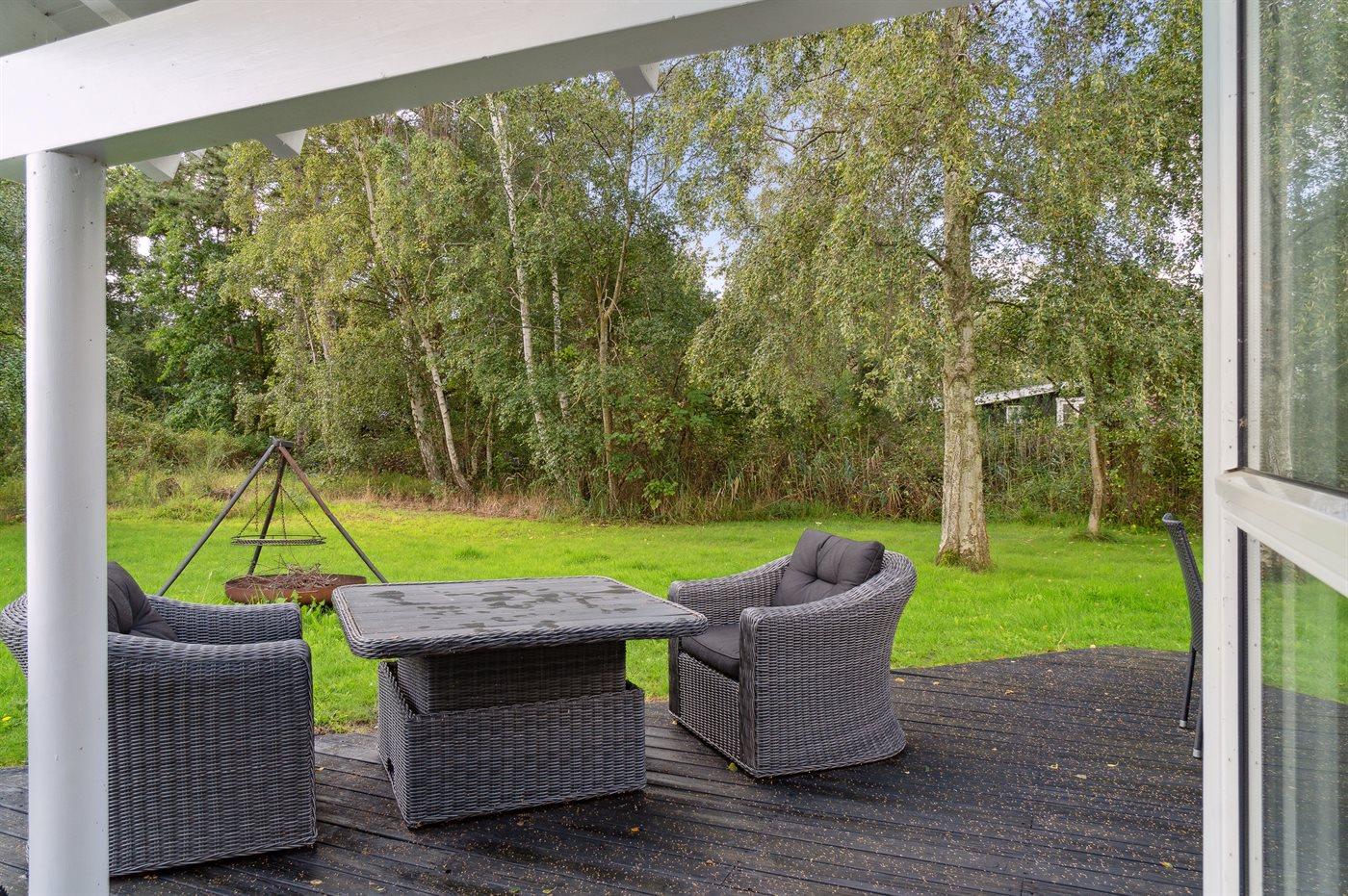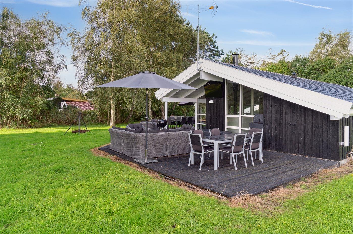 De vakantiewoning is gelegen op een 1592 m² groot natuural grond. Afstand tot de zee 350 m. Dichtstbijzijnde winkel 2900 m. Bij de vakantiewoning hoort 100 m² terras. Daarnaast is er een 18 m² groot overdekt terras. Trampoline. Parkeerplaats bij het huis.