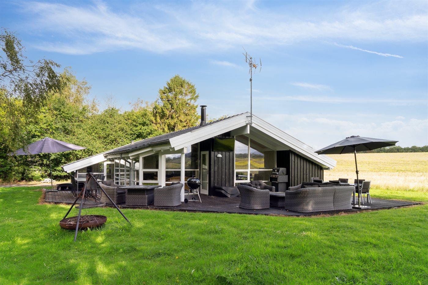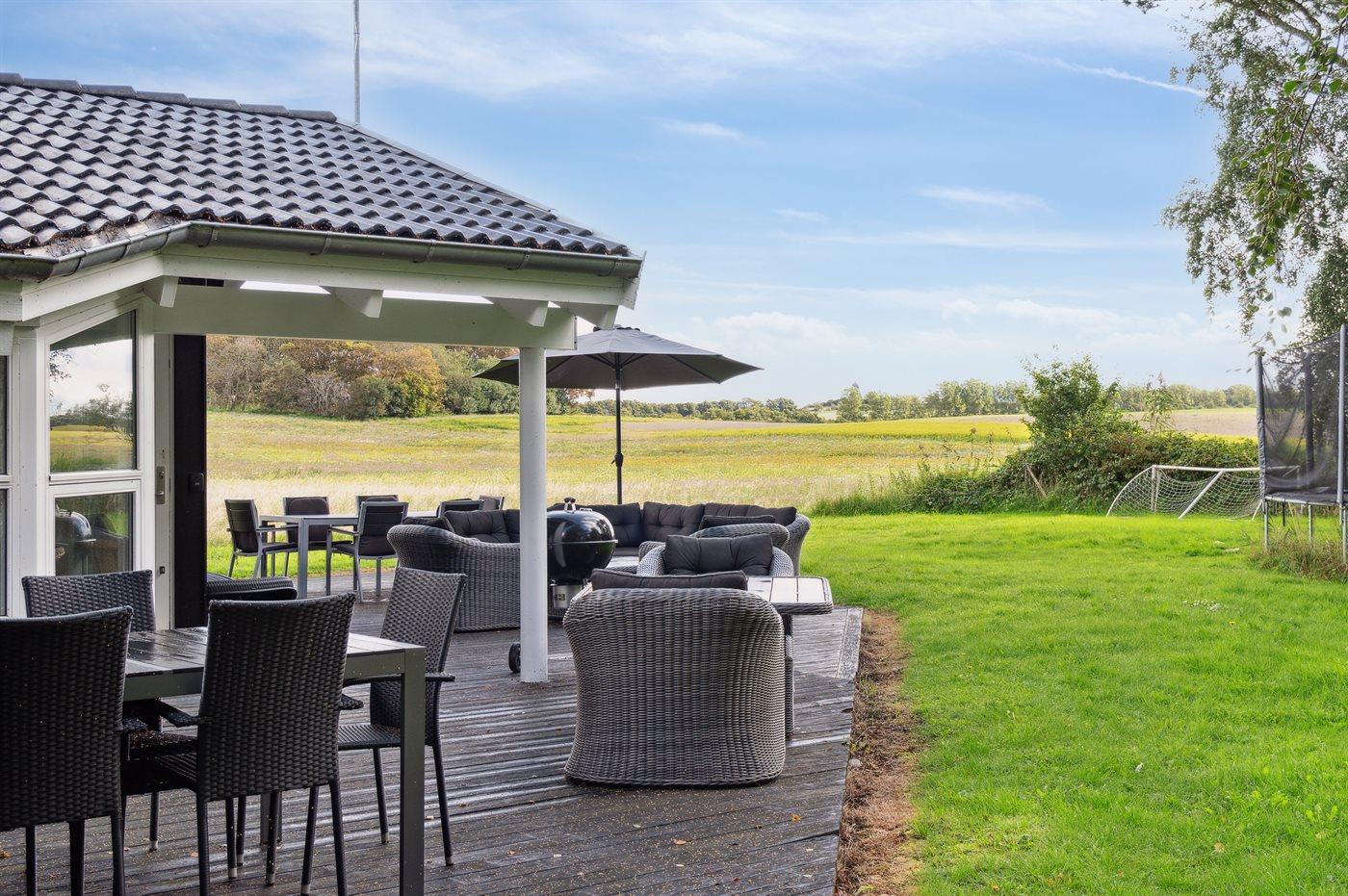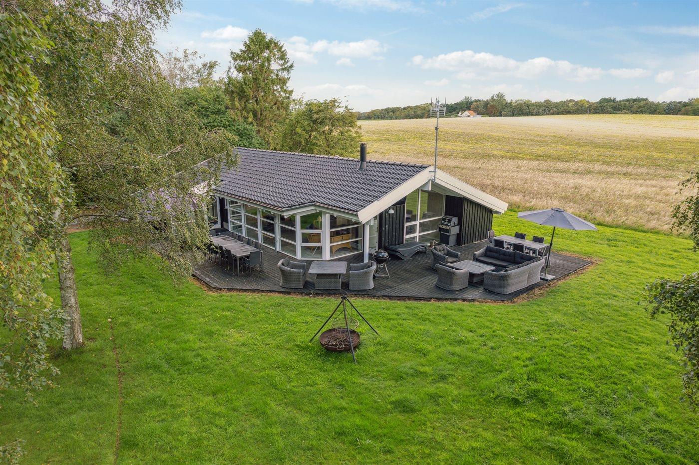 De vakantiewoning is gelegen op een 1592 m² groot natuural grond. Afstand tot de zee 350 m. Dichtstbijzijnde winkel 2900 m. Bij de vakantiewoning hoort 100 m² terras. Daarnaast is er een 18 m² groot overdekt terras. Trampoline. Parkeerplaats bij het huis.