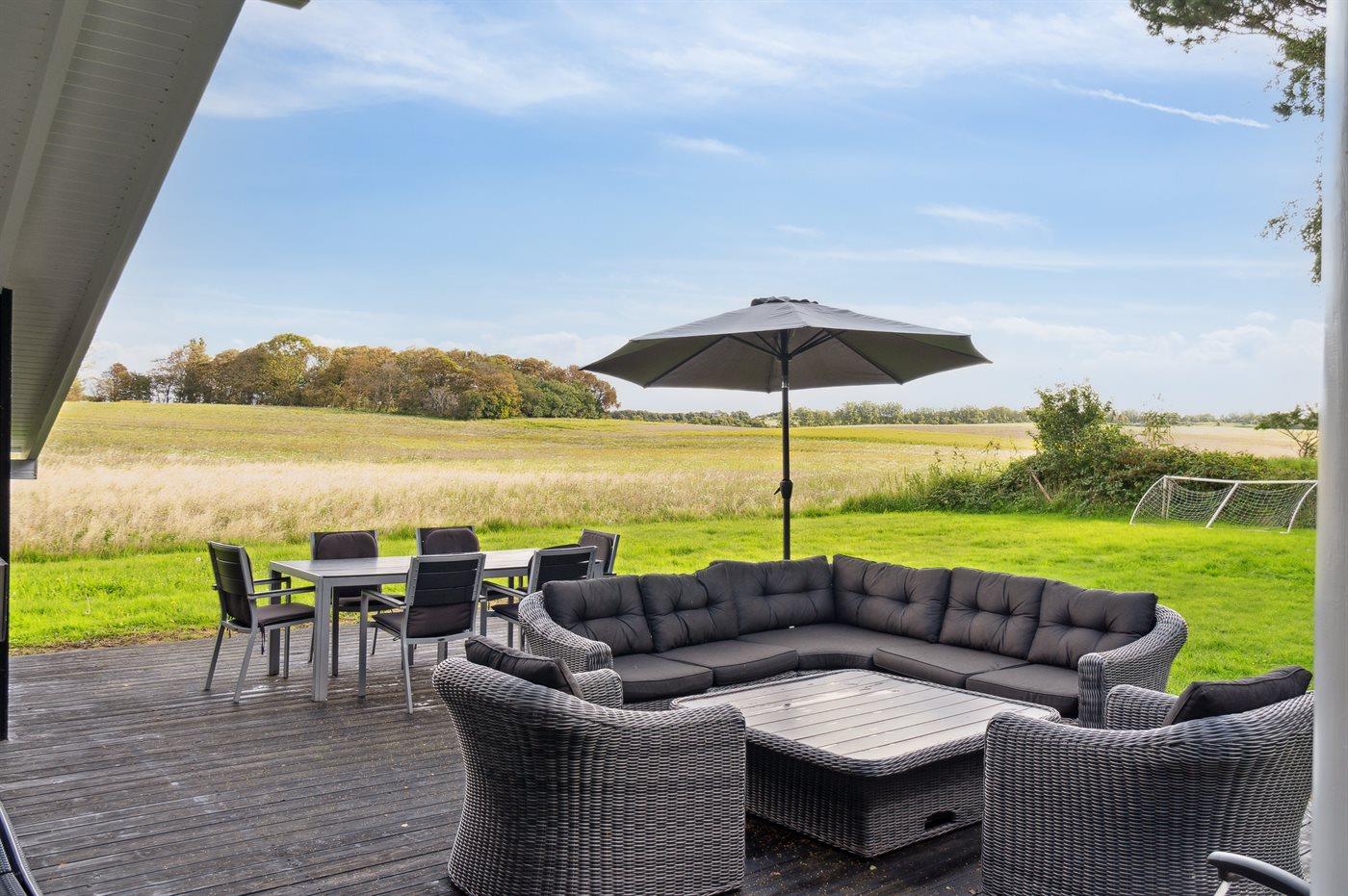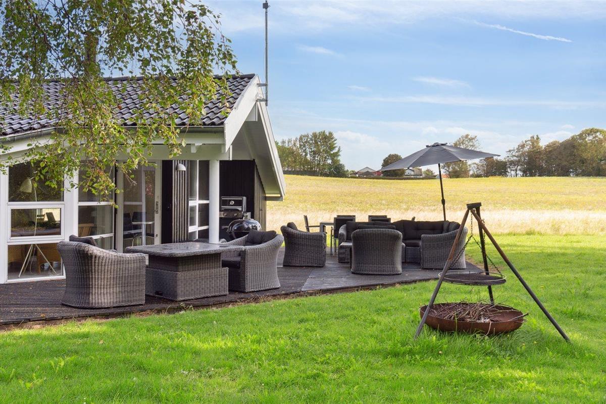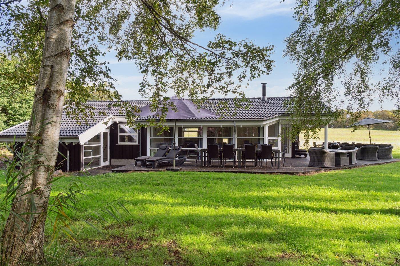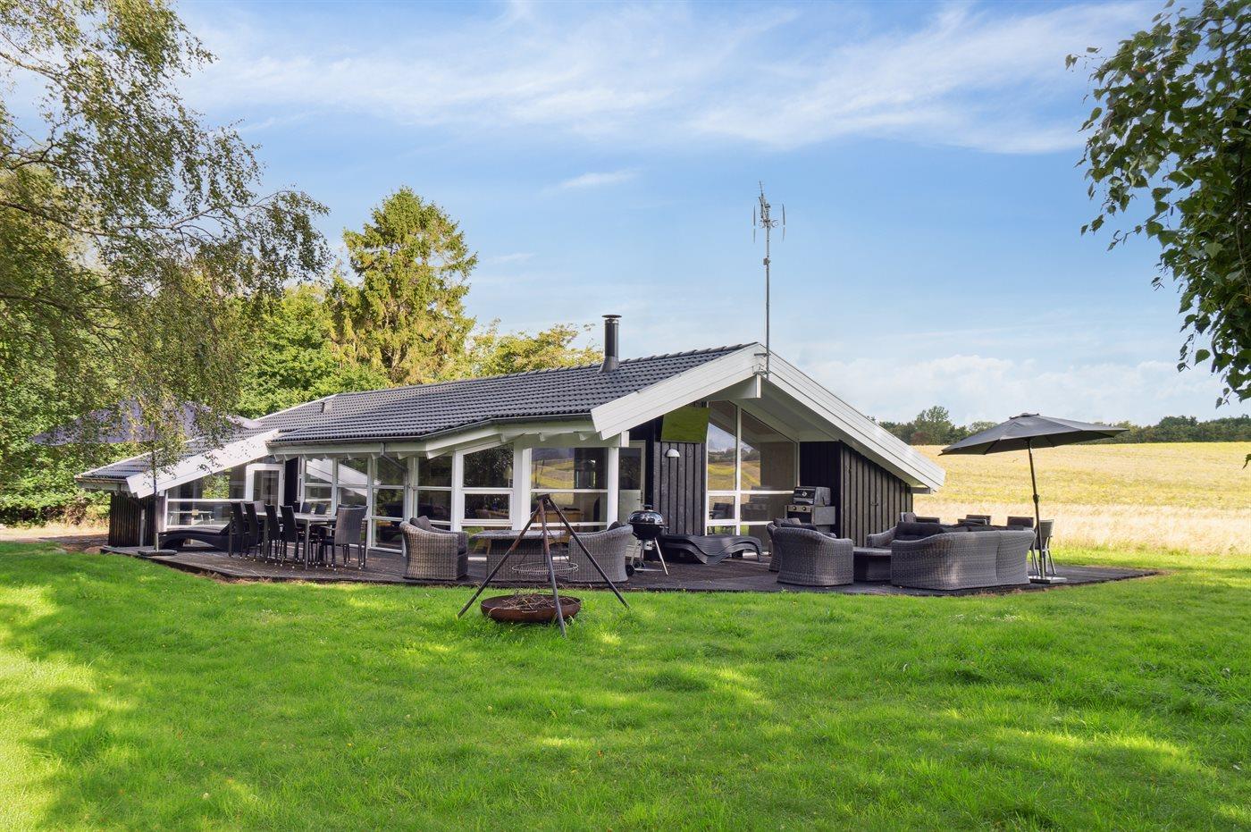 De vakantiewoning is gelegen op een 1592 m² groot natuural grond. Afstand tot de zee 350 m. Dichtstbijzijnde winkel 2900 m. Bij de vakantiewoning hoort 100 m² terras. Daarnaast is er een 18 m² groot overdekt terras. Trampoline. Parkeerplaats bij het huis.
