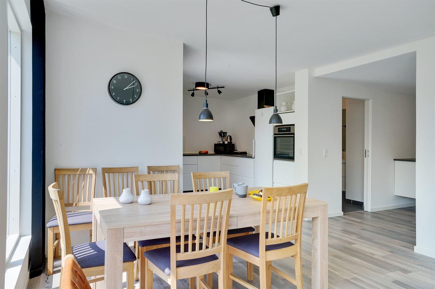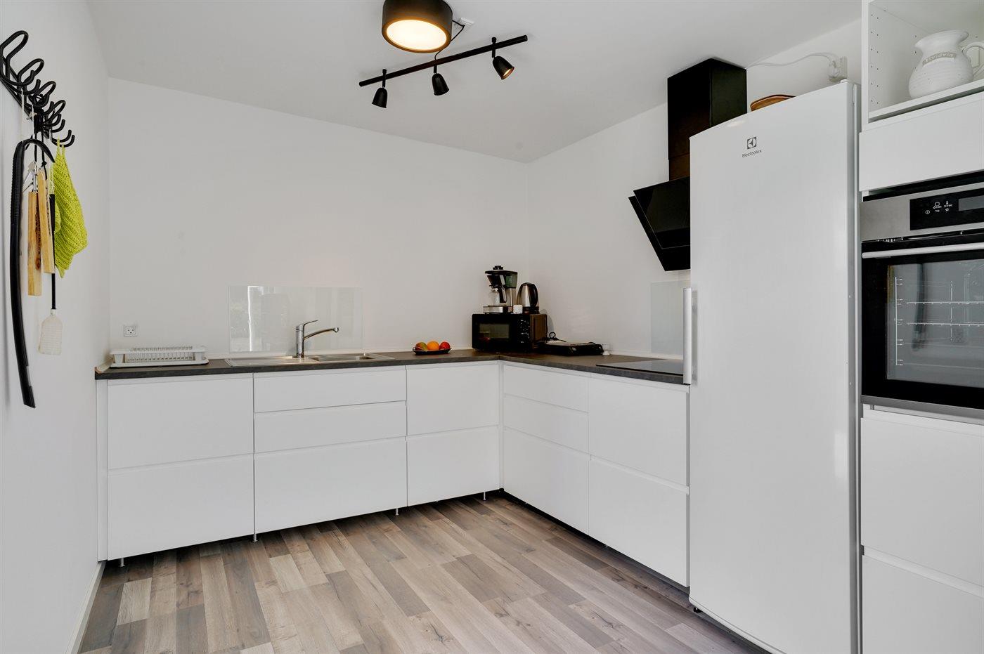 De keuken is uitgerust met koelkast Er is 4 inductiekookplaten, heteluchtoven, magnetron.