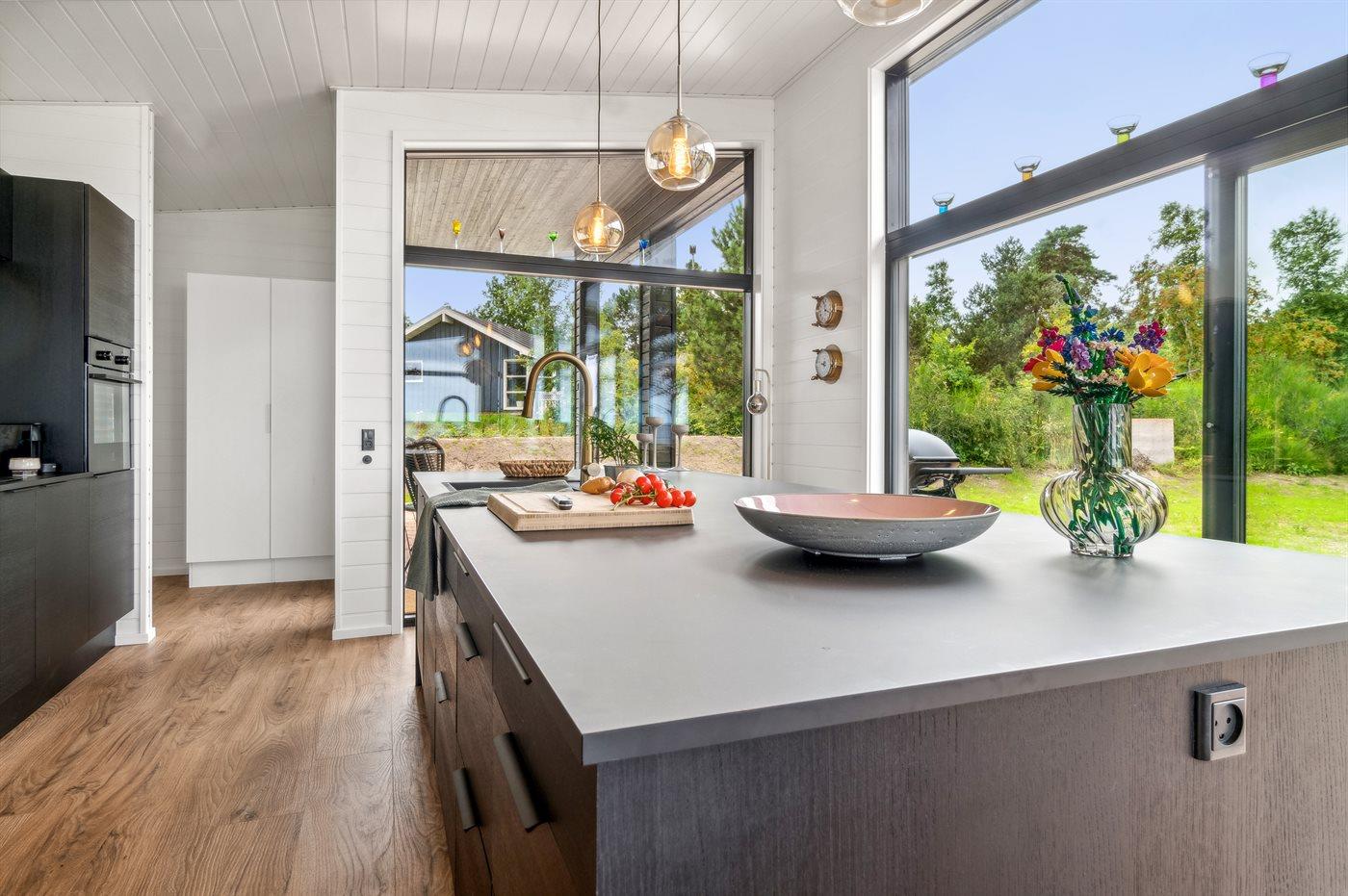 De keuken is uitgerust met koelkast Er is 4 inductiekookplaten, heteluchtoven, magnetron en vaatwasser.