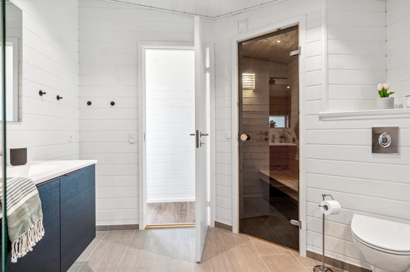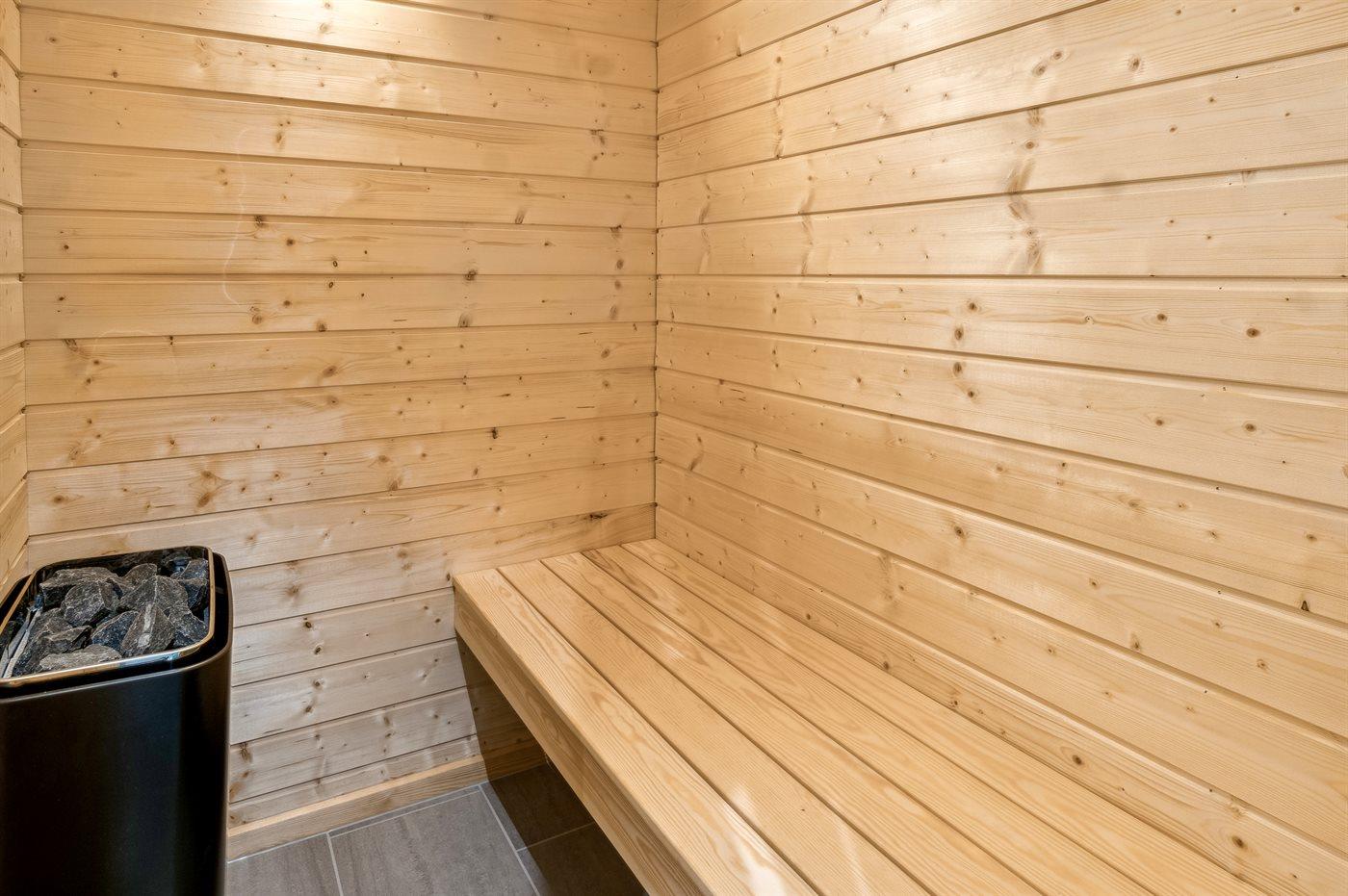 Er is 2 badkamers met douchehok en 2 toiletten. Er is vloerverwarming in 2 van de badkamers. De sauna biedt de gelegenheid tot ontspanning.