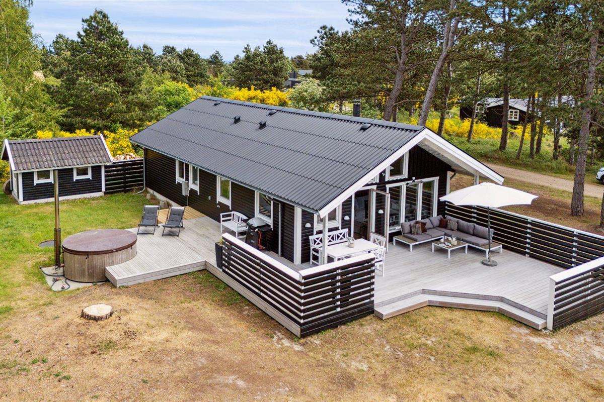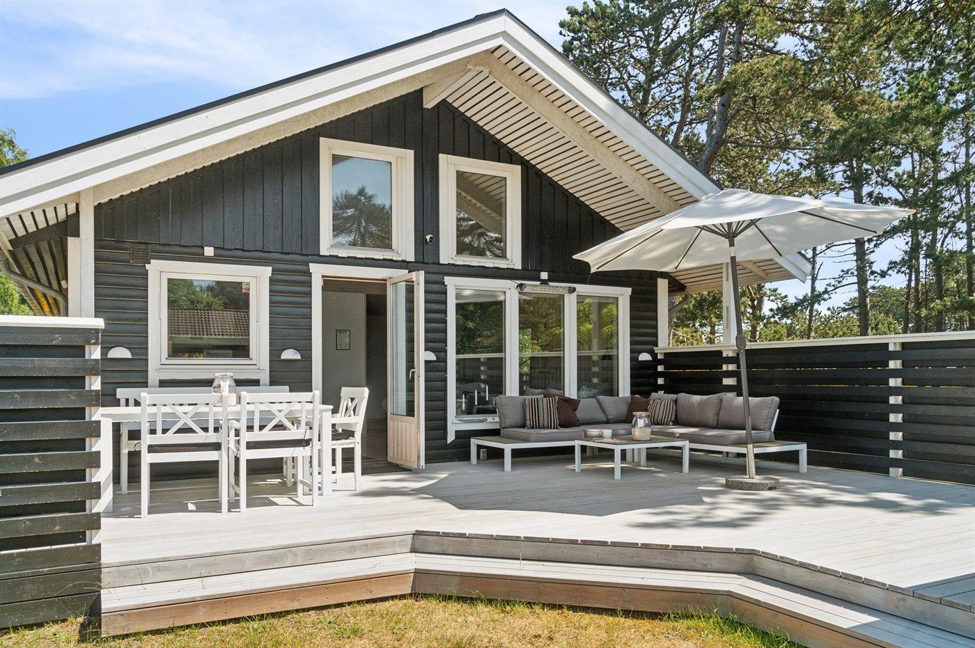 De vakantiewoning is gelegen op een 1494 m² groot aangelegde tuin. Afstand tot de zee 300 m. Dichtstbijzijnde winkel 4100 m. Er is een golfbaan op een afstand van 18000 m. Bij de vakantiewoning hoort 60 m² terras. Barbecue. Parkeerplaats bij het huis.