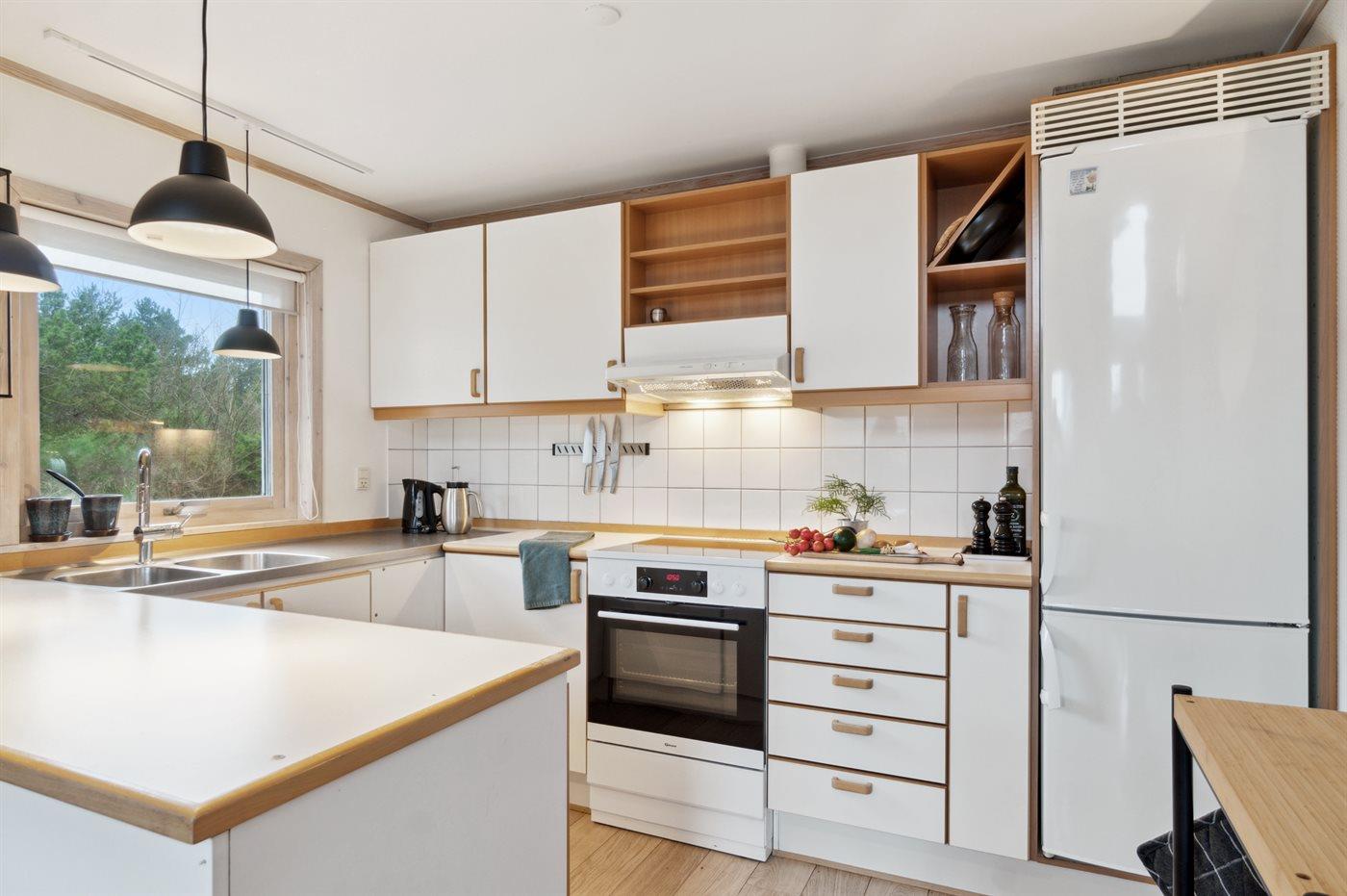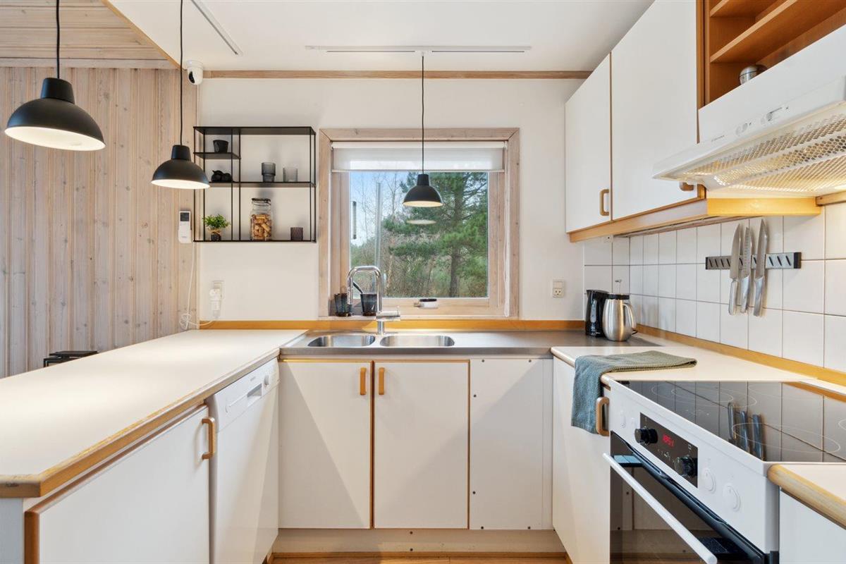De keuken is uitgerust met koelkast, heteluchtoven en vaatwasser.