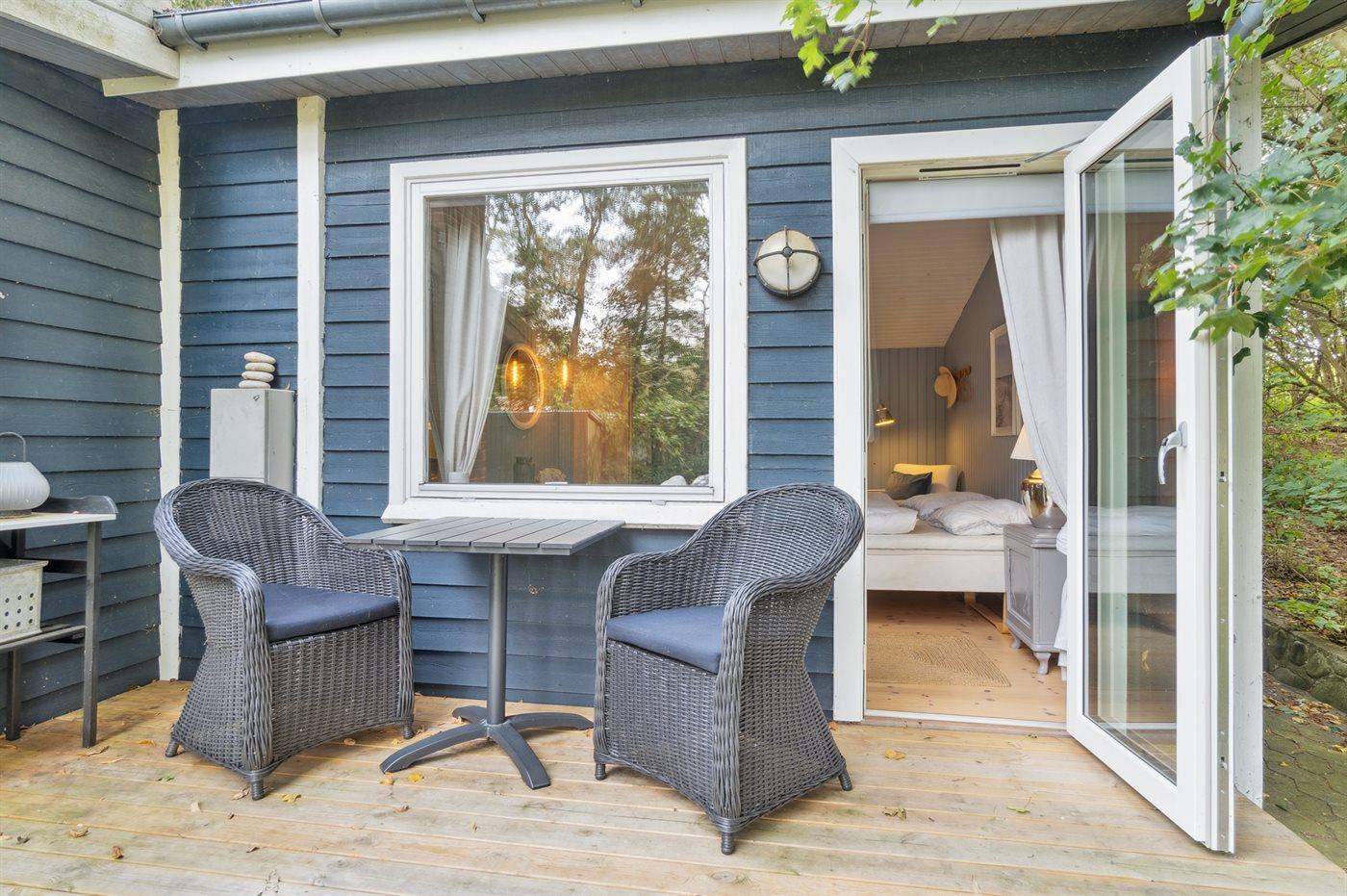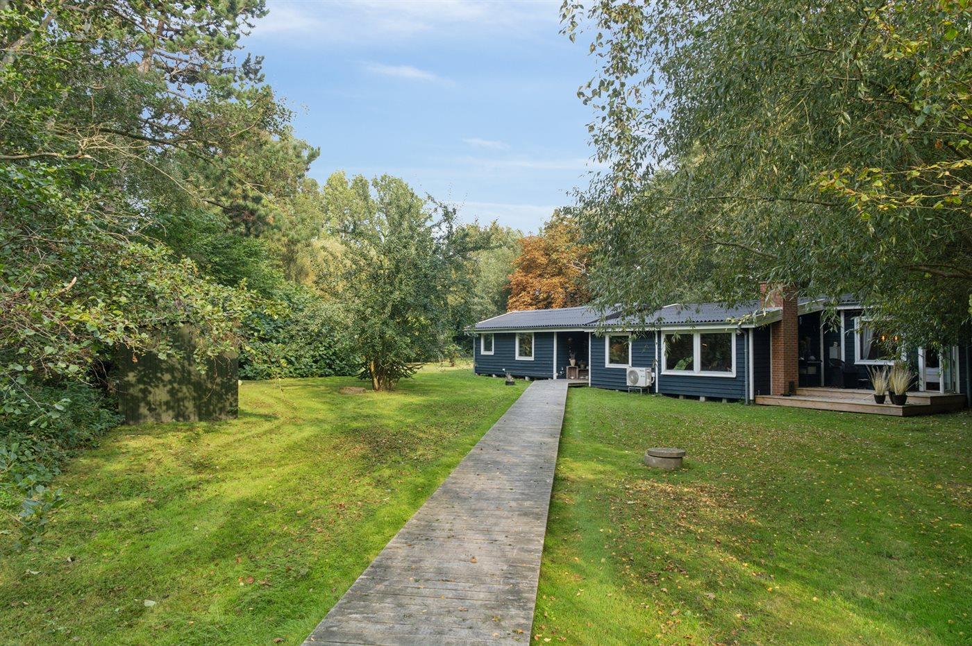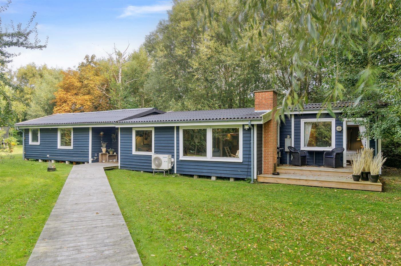 De vakantiewoning is gelegen op een 2013 m² groot aangelegde tuin. Afstand tot de zee 125 m. Dichtstbijzijnde winkel 3300 m. Er is een golfbaan op een afstand van 8300 m. Bij de vakantiewoning hoort 30 m² terras. Schommel. Zandbak. Trampoline. Speeltoren. Glijbaan.Vuurplaats. Barbecue. Parkeerplaats bij het huis.