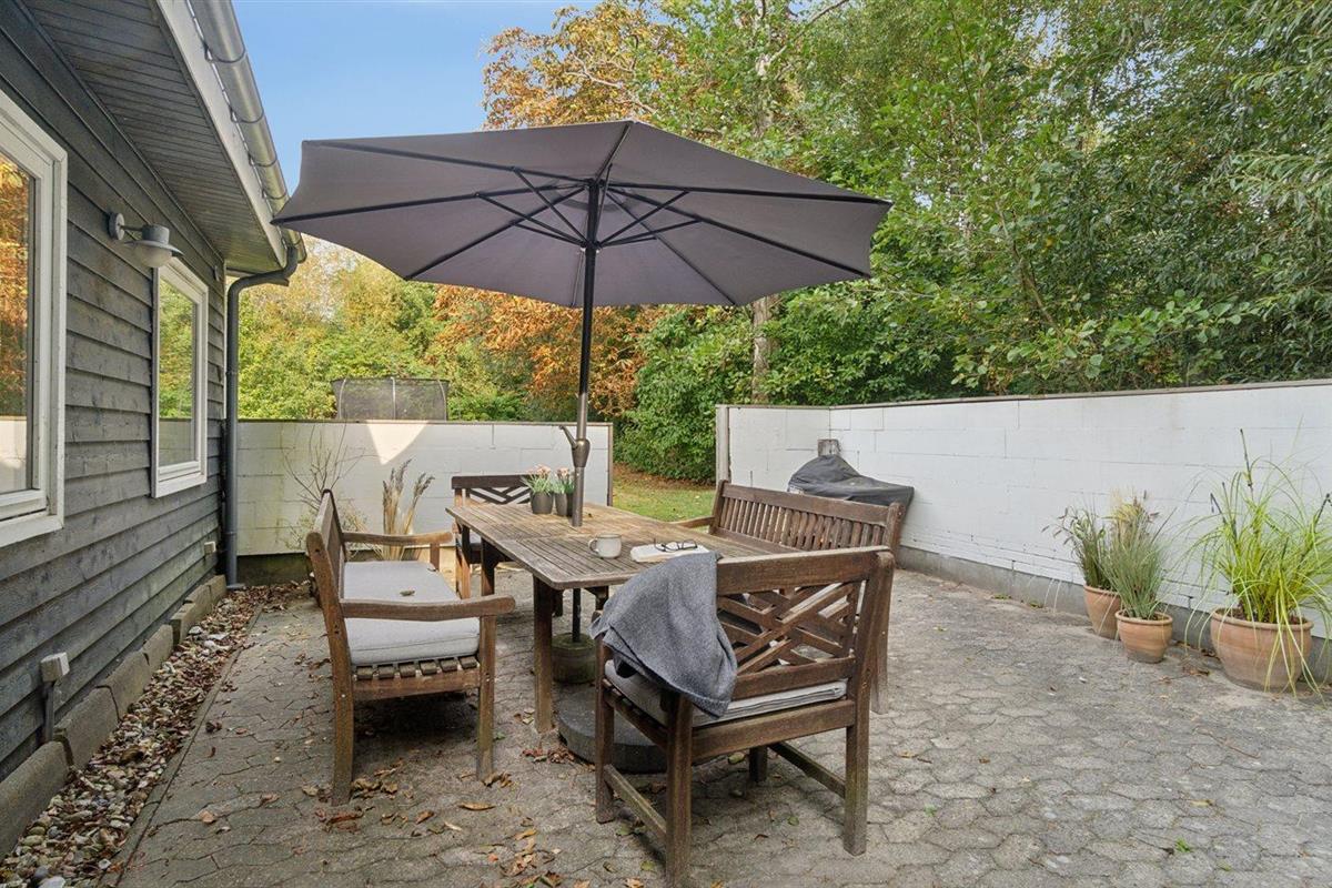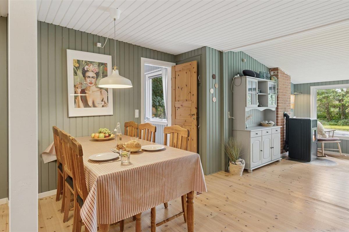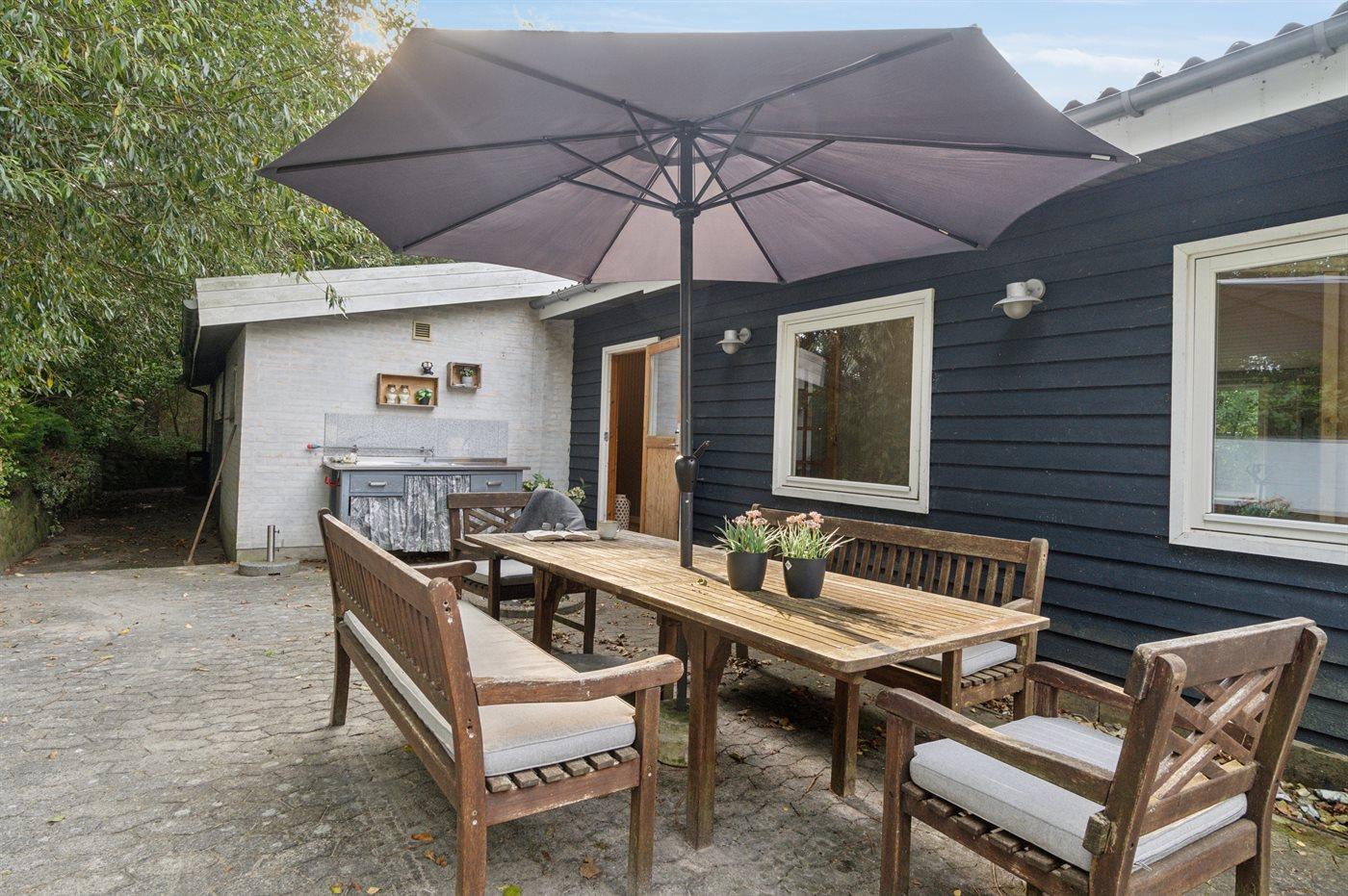 De vakantiewoning is gelegen op een 2013 m² groot aangelegde tuin. Afstand tot de zee 125 m. Dichtstbijzijnde winkel 3300 m. Er is een golfbaan op een afstand van 8300 m. Bij de vakantiewoning hoort 30 m² terras. Schommel. Zandbak. Trampoline. Speeltoren. Glijbaan.Vuurplaats. Barbecue. Parkeerplaats bij het huis.