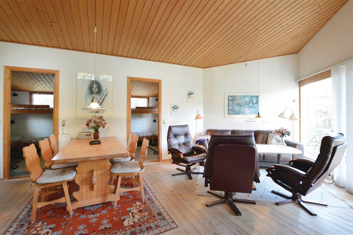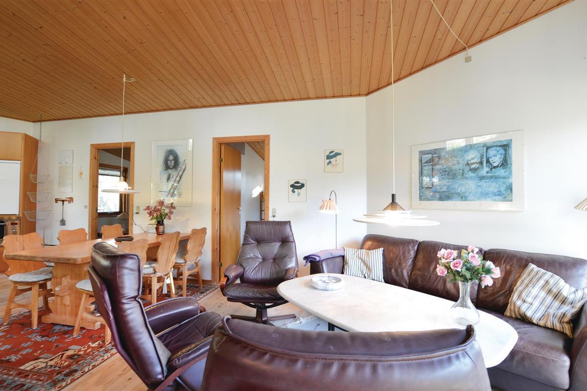 Dit gezellige en ruime vakantiehuis ligt op slechts 350 meter van de kust op het schiereiland Sjællands Odde, tussen het Kattegat en de baai van Sejerø. Het huis beschikt over een open keuken die aansluit op de lichte eet- en woonkamer met een sfeervolle open haard. Grote ramen bieden uitzicht op de tuin en het daklicht zorgt voor extra daglicht.