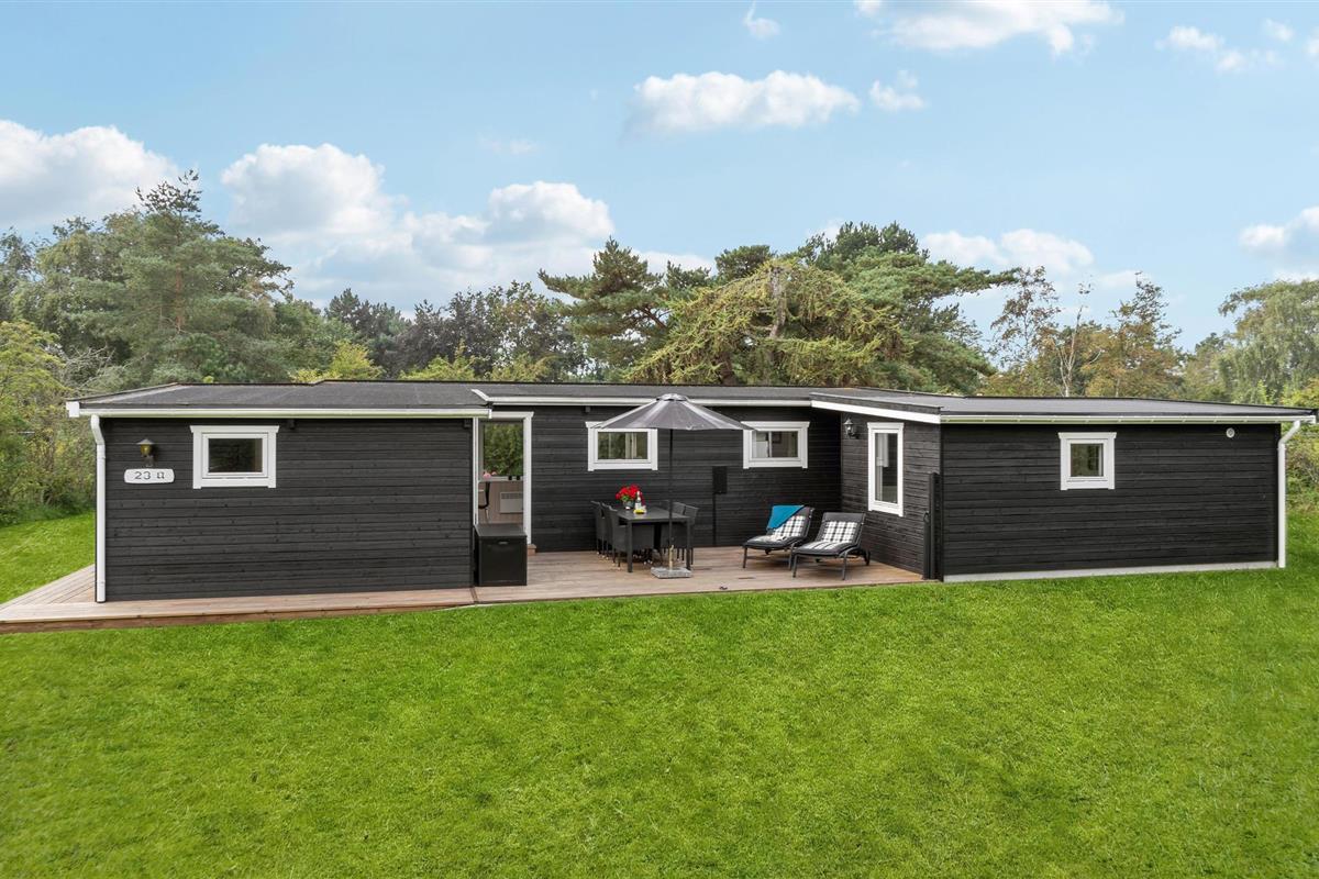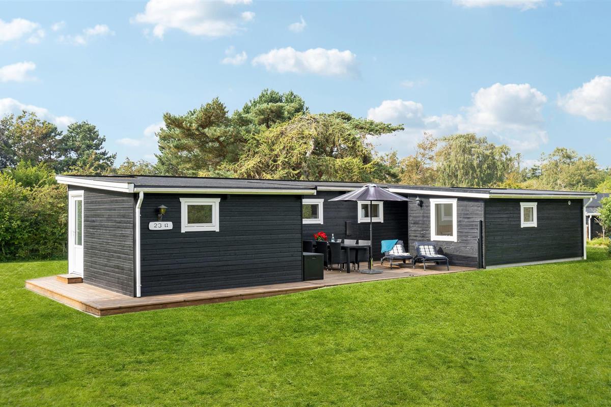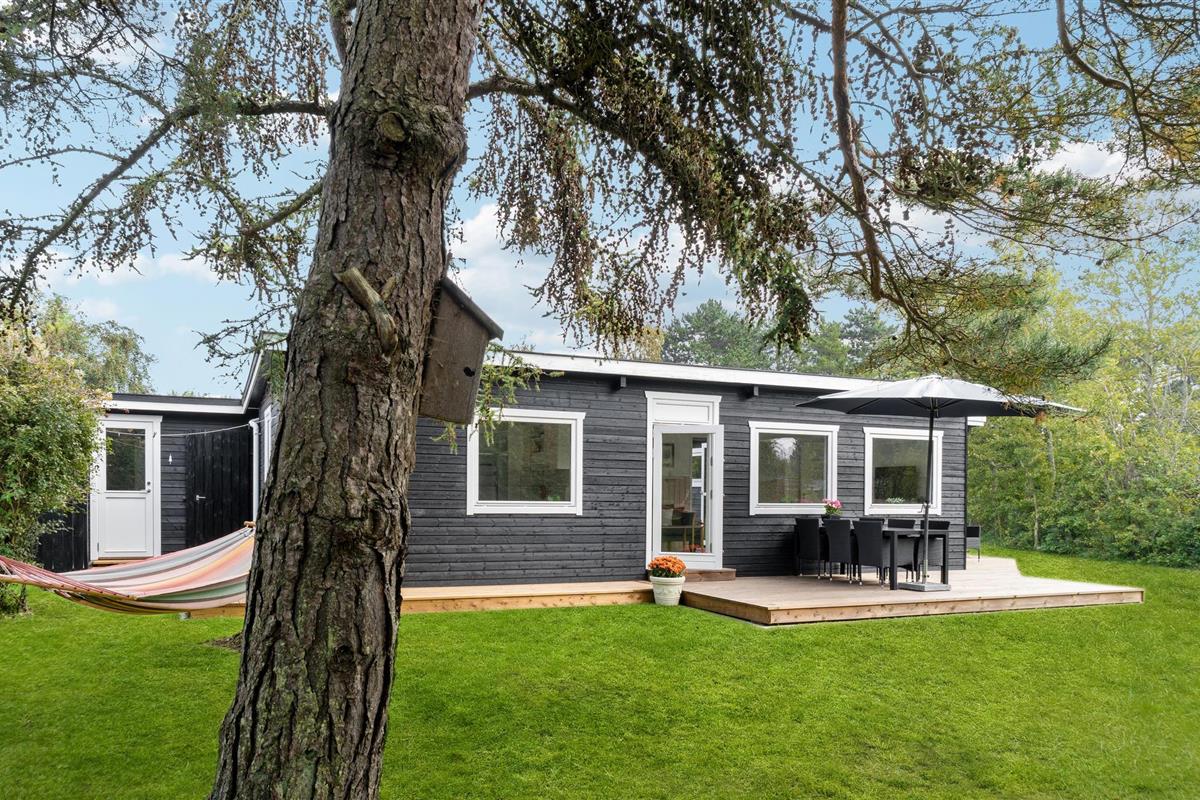 Ontdek dit vrijstaande Scandinavisch vakantiehuis met grote tuin nabij zee in Sjællands Odde.