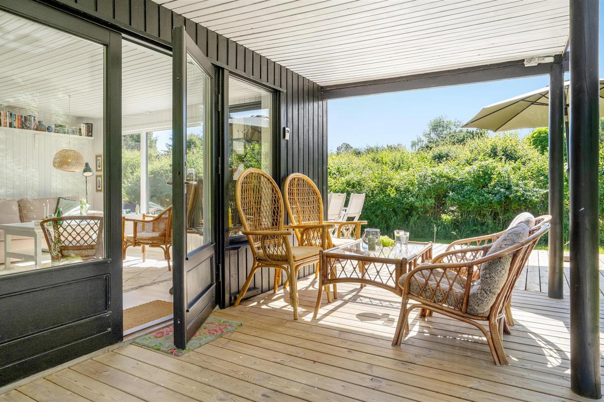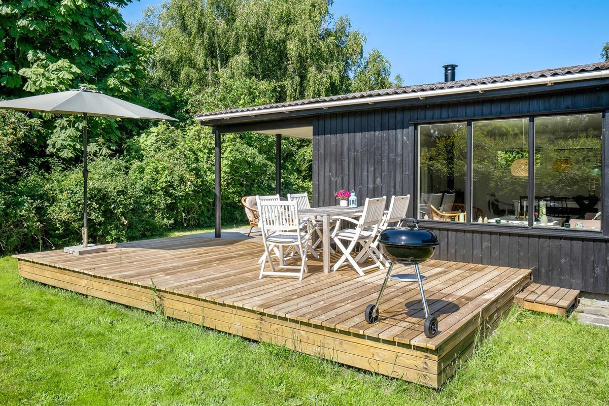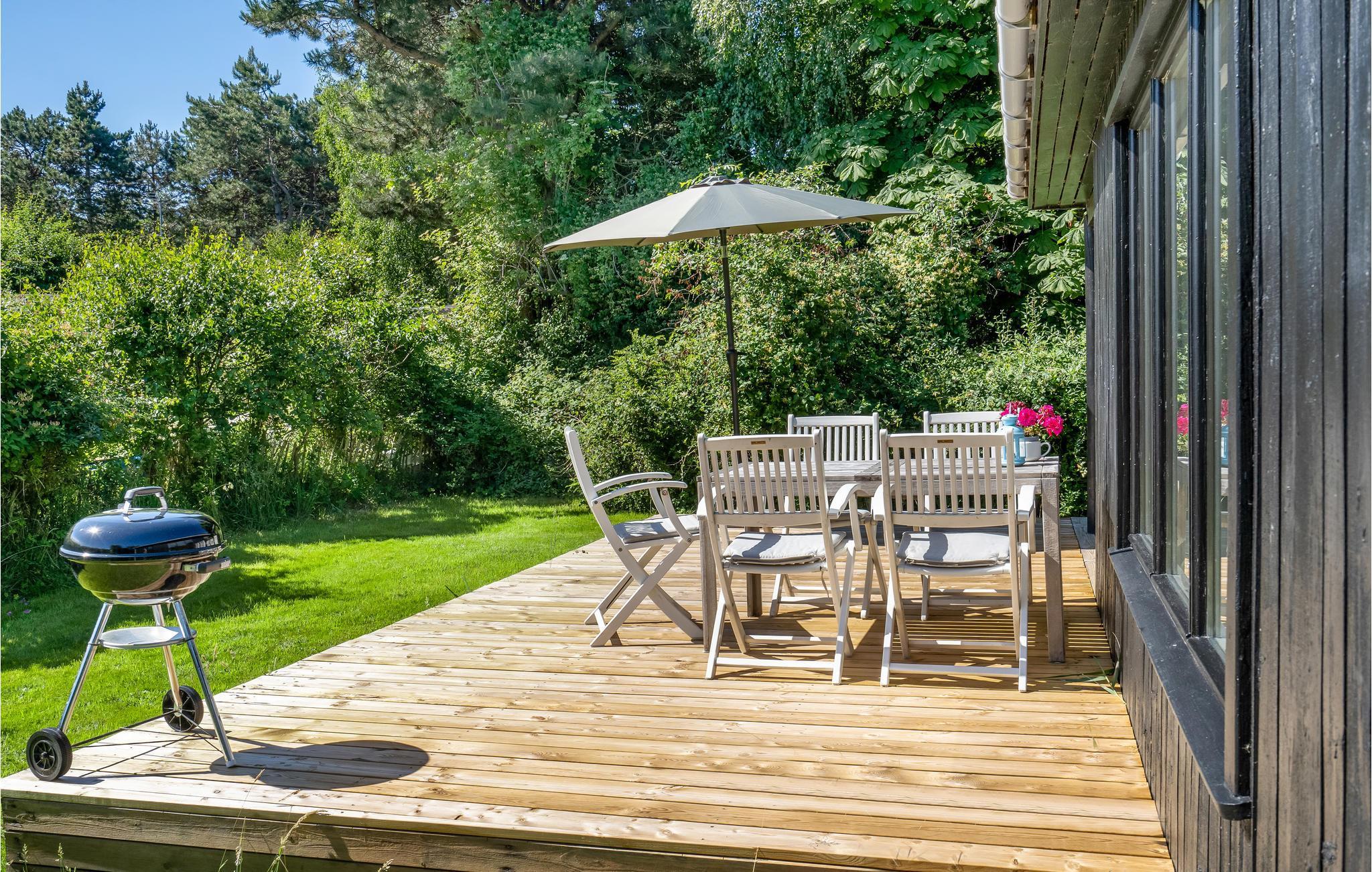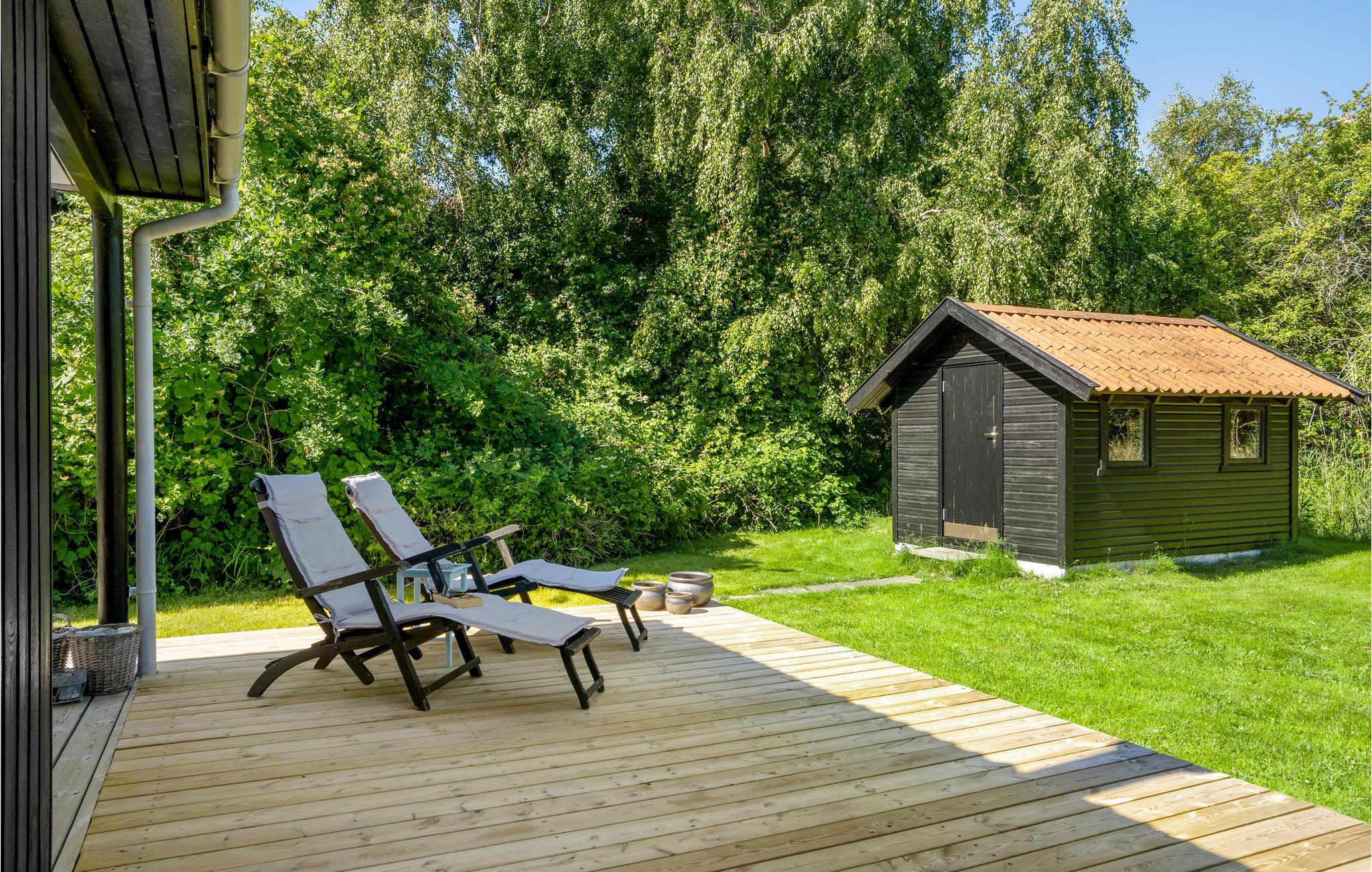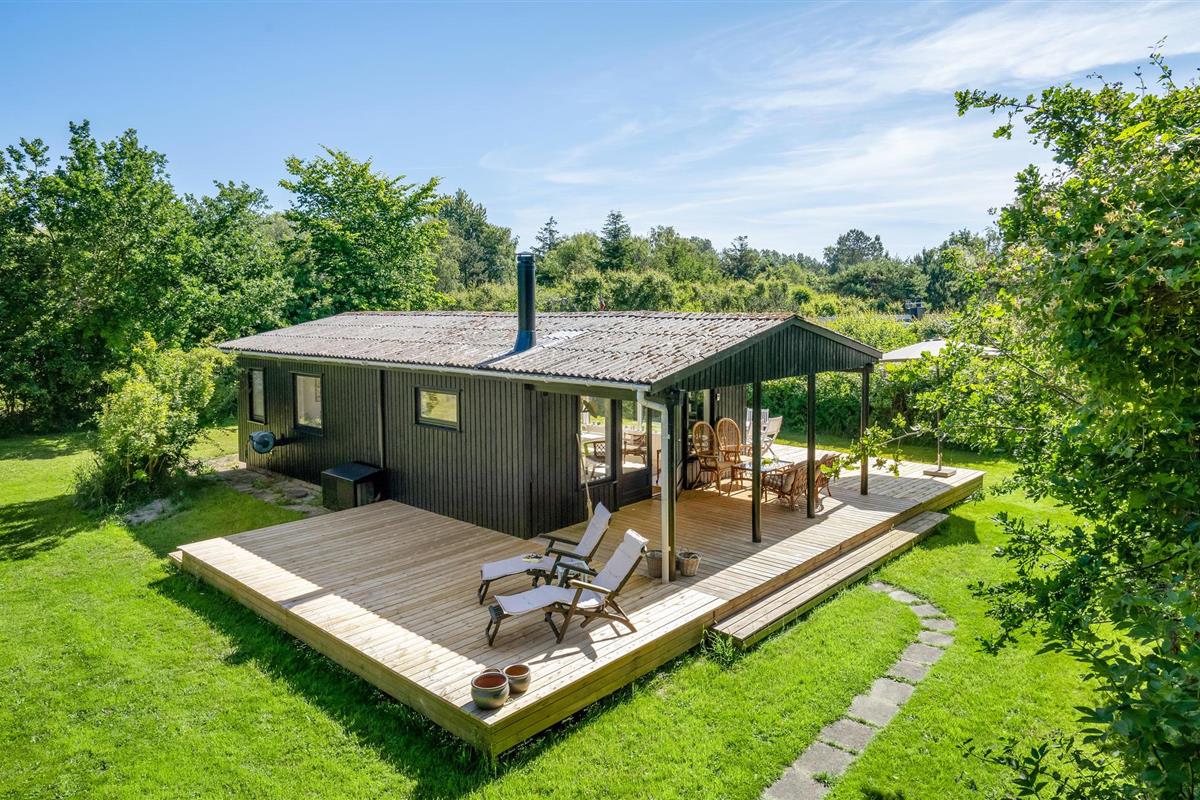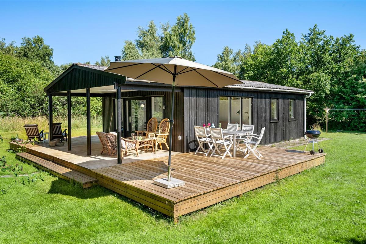Chic houten vakantiehuis nabij het strand op Sjællands Odde, met groot terras en moderne voorzieningen voor een ontspannen verblijf.