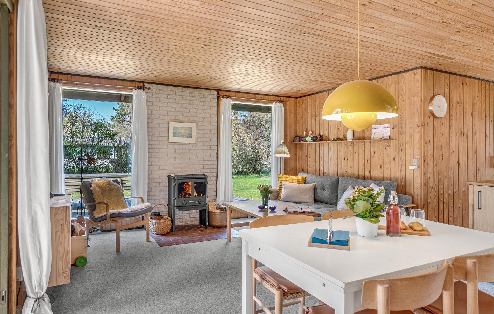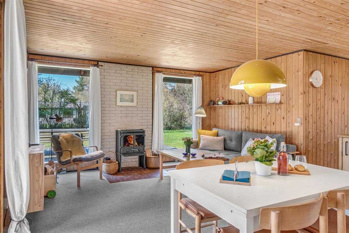 Het gezellige huis verwelkomt u op een idyllisch perceel omringd door bomen en op loopafstand van het strand in de buurt van goede golf- en vismogelijkheden. De uitnodigende kamers met huiselijke inrichting krijgen een warme uitdrukking door de houten lambrisering en vormen de ideale omgeving voor een ontspannende vakantie waar u het dagelijkse leven ver achter u kunt laten. Grote ramen zorgen ervoor dat u in het woongedeelte geniet van een prachtig uitzicht op de tuin. Ontspan hier na een strandwandeling, maak het gezellig met een film of spelletjes en geniet van uw tijd samen terwijl de vlammen zachtjes knetteren in de open haard.