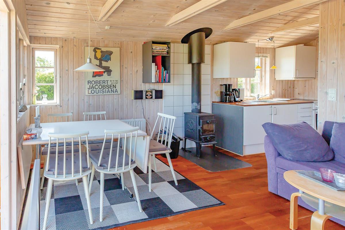 Dit charmante vakantiehuis ligt op een groot, open natuurgebied bij het Kattegat. Vanuit het huis heeft u een geweldig uitzicht over het water. Op het grote houten terras kunt u overdag van de zon genieten en 's avonds de barbecue aansteken. De bedden zijn maximaal 1.90 cm lang. Het huis op Sj. Odde ligt direct buiten op Gniben, een schiereiland tussen het Kattegat en de Sejerø-baai. De zee ligt hier op slechts 50 m afstand, waar de hemel in een bijzonder licht baadt. Op de gletsjerkop van Odsherred waant u zich in een geopark. Daar vindt u langs de Tumulusweg, met de grafheuvels, getuigenissen uit het stenen en bronzen tijdperk, de resten van een 300 jaar geleden verlaten bosdorp in Ulkerup, het Hempel Glasmuseum en in het Odsherred Museum de kopie van de zonnewagen die in het Trundholm Mose veen is gevonden. U ziet ook de zwerfkei Lommesten en het kasteel Næsholm Borg, dat op een klein eiland in het Nygård Sø-meer staat tussen Højby en Nykøbing Sj. Op Odsherred is ook een natuurschool die u zeevruchten laat vangen, vlindersafari's en expedities in het bos organiseert en u uitnodigt voor trollen- en vossenexcursies. Hovvig Nature Reserve, een gerenaturaliseerd wetland, herbergt een rijk vogelleven. Uw kinderen zullen ook enthousiast zijn over een bezoek aan het Odsherred Fire Museum. Bezoek vlakbij Sommerland Sjælland, galerijen die ook typerend zijn voor Odsherreds en Kasteel Dragsholm uit de 13e eeuw. Havnebyen is de enige echte vissershaven met kotters en een kleine rokerij. Zelfs recreatieve vissers krijgen hier altijd wel iets aan de haak. In Nykøbing Sjælland kunt u goed winkelen en genieten van het koffiehuisleven. Vanuit de haven in Rørvig vertrekken ook zeehondensafari's. Vanuit Rørvig kunt u naar Hundested varen, vanwaar het slechts een uur rijden is naar Kopenhagen. Geniet hier van gerookte vis terwijl uw kinderen krabben vangen op de pier.