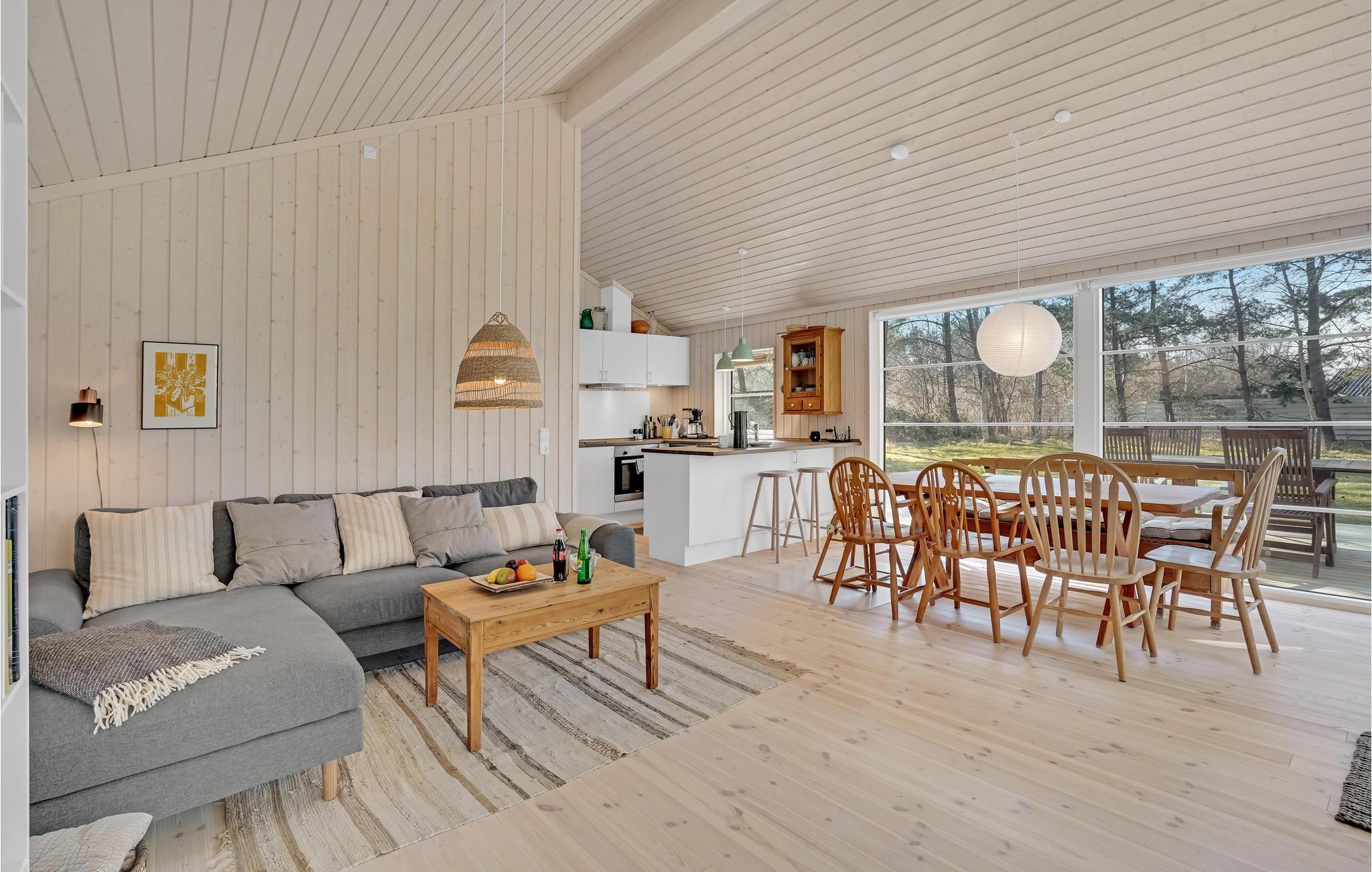 Je stapt binnen in een modern vakantiehuis dat is ingericht met stijlvolle meubels. Het puntdak geeft je genoeg ruimte om te ademen en ook een ruimtelijk gevoel. Dankzij de grote raamfronten komt er ongelooflijk veel licht binnen, wat bijdraagt aan de natuurlijke flair. Buiten vind je een gedeeltelijk overdekt terras met tuinmeubilair en barbecue, waar je kunt genieten van ontspannende uren in de buitenlucht, samen ontbijten en 's avonds barbecueën, evenals een tuin met schommel en zandbak, waardoor het huis geschikt is voor kinderen.