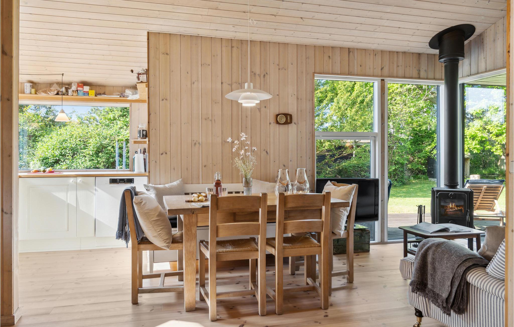 Vanuit dit prachtige huis bereik je de zee in slechts een paar stappen, dus zwemplezier en vistochten zijn een integraal onderdeel van de vakantie. De uitnodigende, lichte kamers, waar de houten lambrisering een warme uitstraling aan geeft, creëren een gezellige omgeving waar je het leven van alledag ver achter je kunt laten. Ontspan hier met een prachtig uitzicht op de tuin, maak het jezelf gemakkelijk met een film of spelletjes en geniet van de vakantieavonden terwijl de vlammen zachtjes knetteren in de open haard.