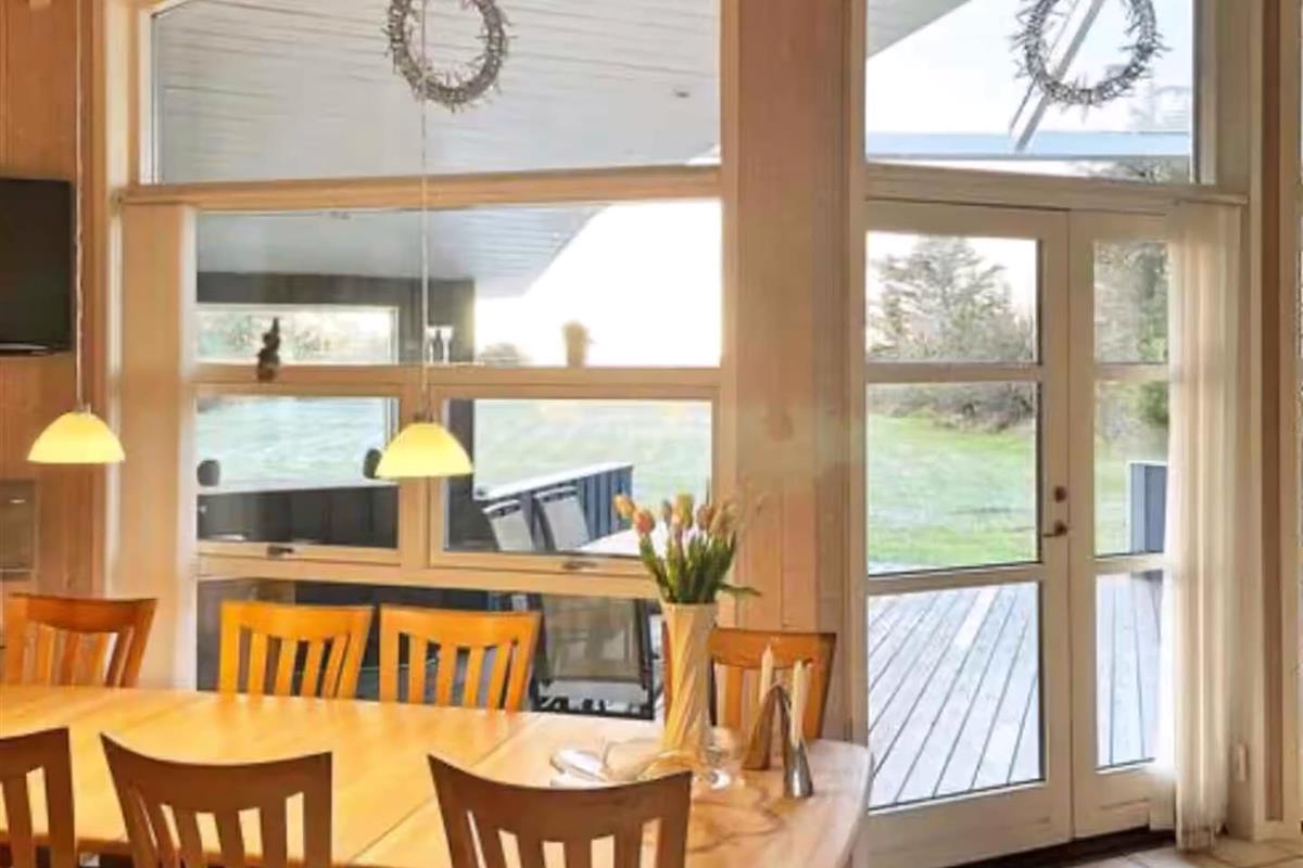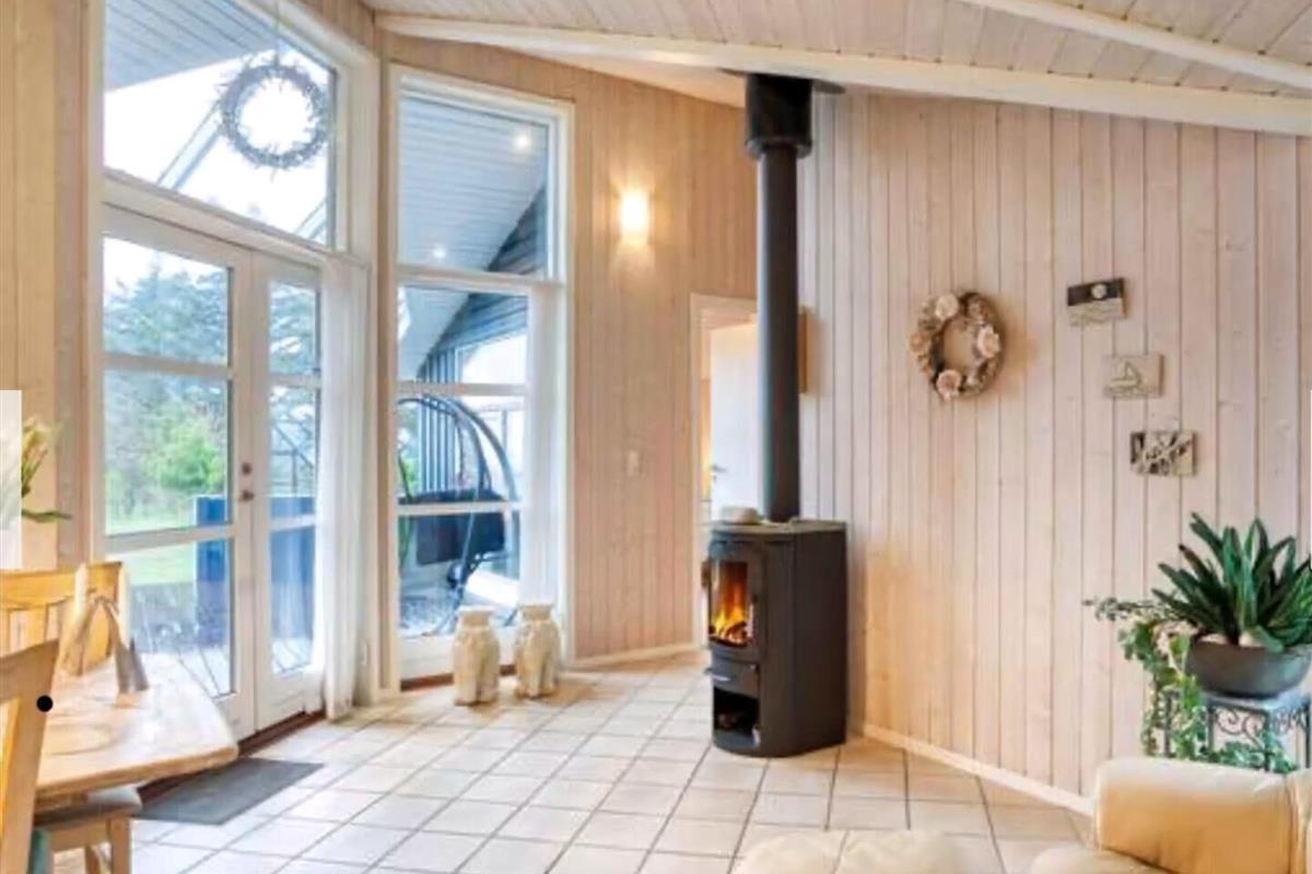 Uitzicht over water en het perceel direct naar het strand bij Yderby Lyng is wat dit huis onder andere te bieden heeft. Daarnaast is er een bubbelbad en sauna voor heerlijk ontspanning. Natuur, prachtig gebied. Lokale specialiteiten zoals het gewilde bakkerij, verse viswinkel met restaurant en biologische restaurants met lokale ingrediënten. Kijk verder naar Geopark Odsherred. Wanneer je aankomt bij het zomerhuis zie je rechts van de voordeur een aparte bijkeuken met wasmachine. In het huis zelf is er vlak bij de entree een kamer met een tweepersoonsbed en één van de badkamers van het huis. Van hieruit is er ook toegang tot de open keuken die verbonden is met de woonkamer en eetruimte. Hoge plafonds en uitzicht over het water zowel vanuit de zithoek als het eetgedeelte. Kamer met een dubbel verstelbaar bed, uitzicht over het water en toegang tot het terras, en twee andere tweepersoonskamers. Geen van de slaapkamers ligt naast elkaar. De kamers zijn verspreid over het huis. Verder is er een klein speelhuis met verschillende speelgoederen. Er zijn ook boeken, bordspellen en een selectie van dvd’s en vhs-video’s, naast verschillende tv-kanalen en wifi in het huis. Roken, jeugdgroepen, feestjes en huisdieren zijn niet toegestaan in het huis. Let op: Niet te huur voor commercieel gebruik.