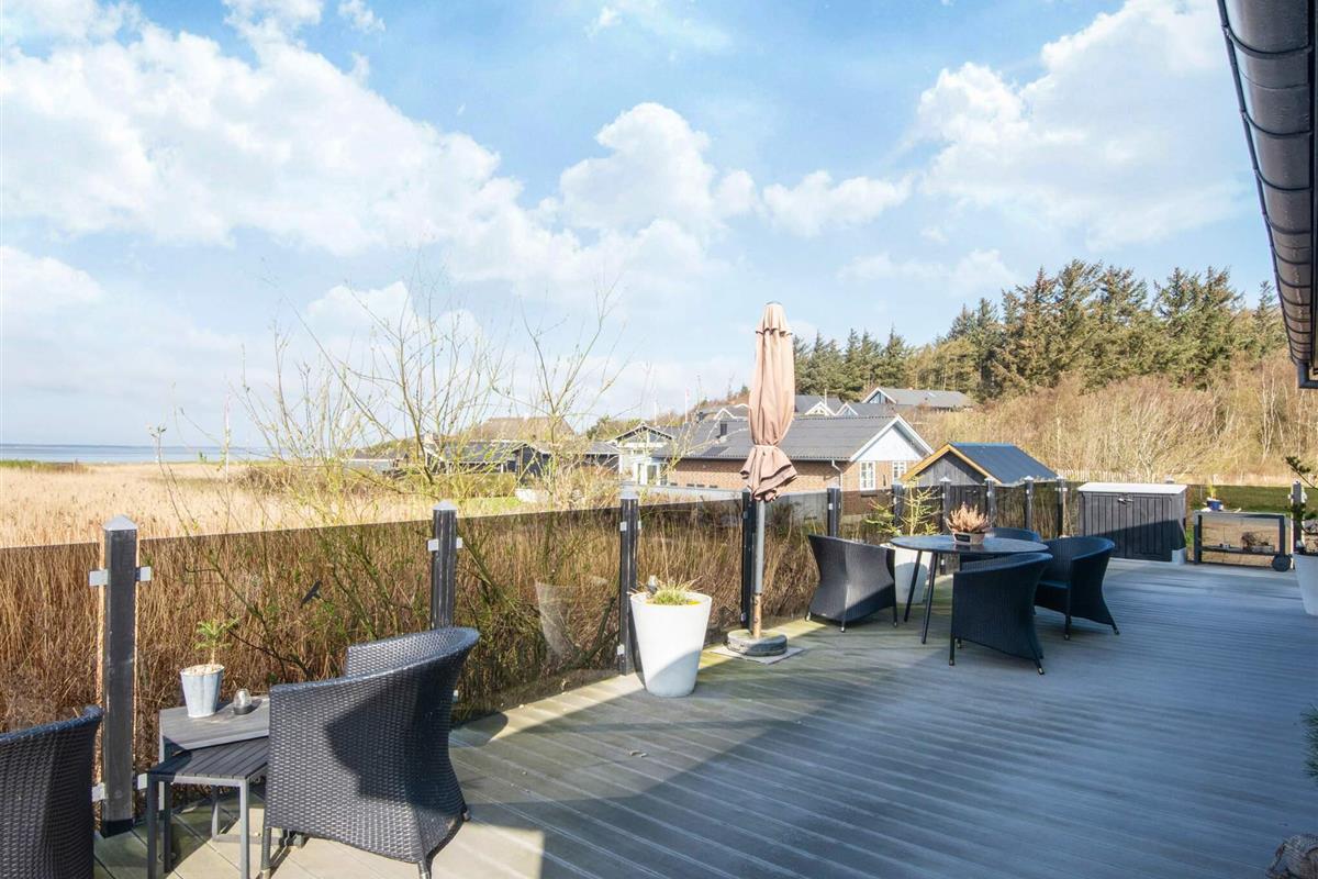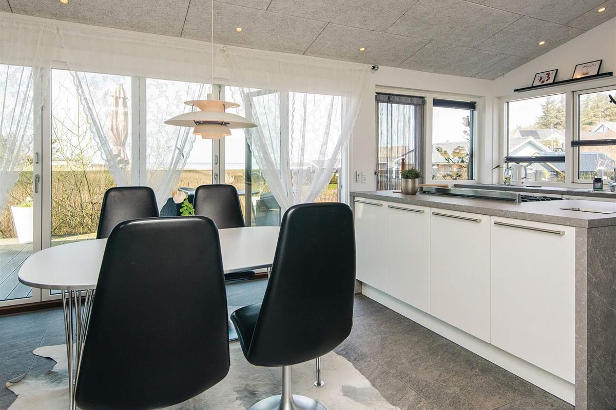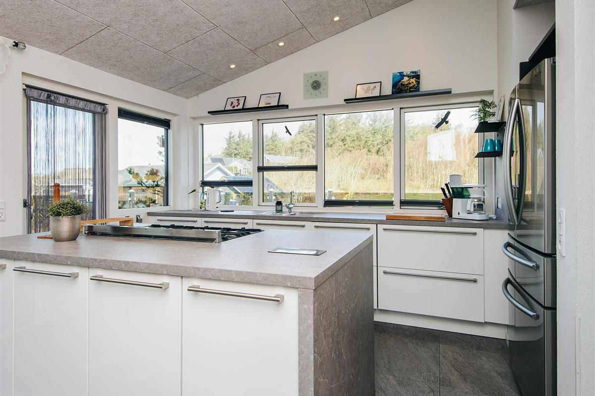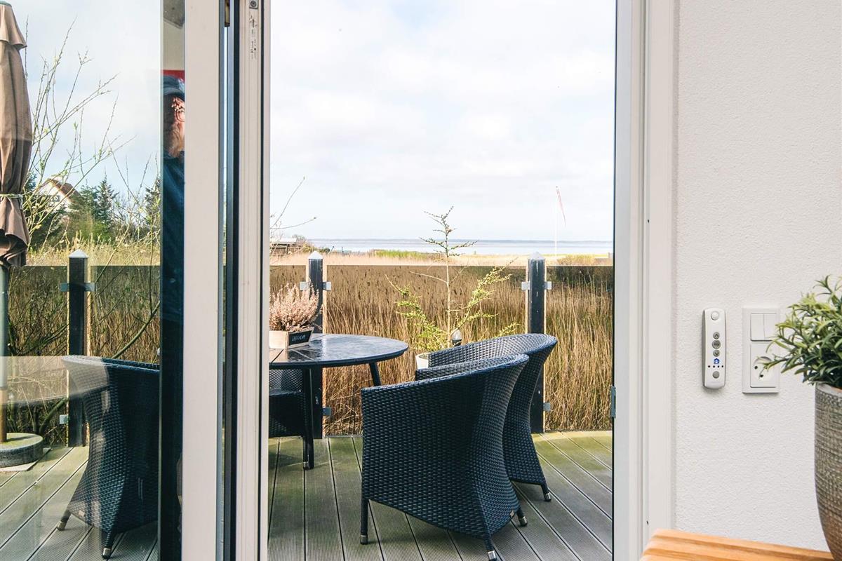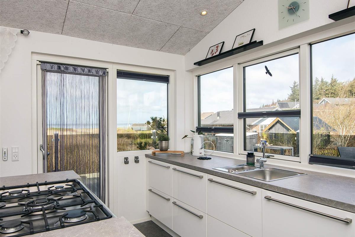 Dieses erhöhte Ferienhaus bietet eine fantastische Lage mit atemberaubendem Panoramablick über die Ho-Bucht und die Insel Fanø. Von der Terrasse, dem Wohnzimmer und sogar der Küche aus genießen Sie die wunderschöne Naturlandschaft und das sich ständig verändernde Licht über dem Wasser. Die Umgebung schafft eine einzigartige Urlaubsatmosphäre, in der Sie sich entspannen und erholen können.