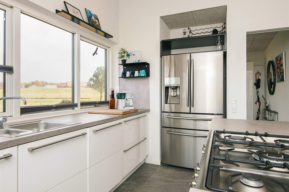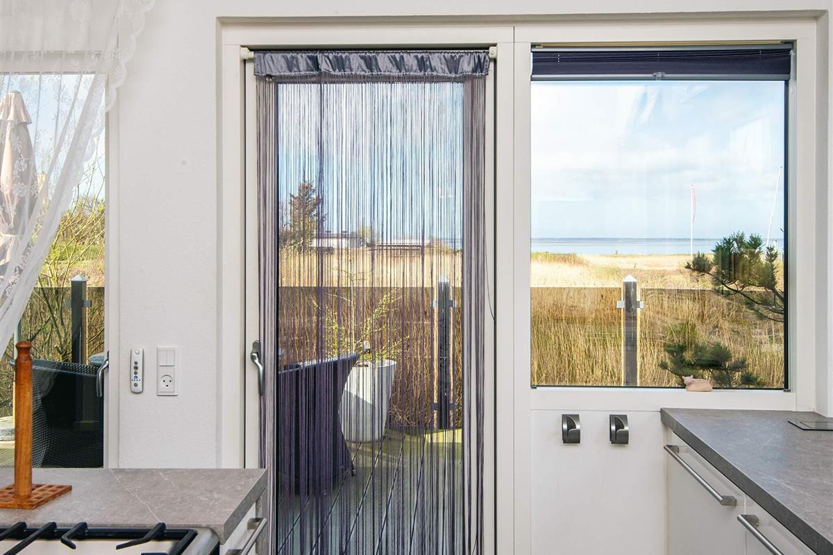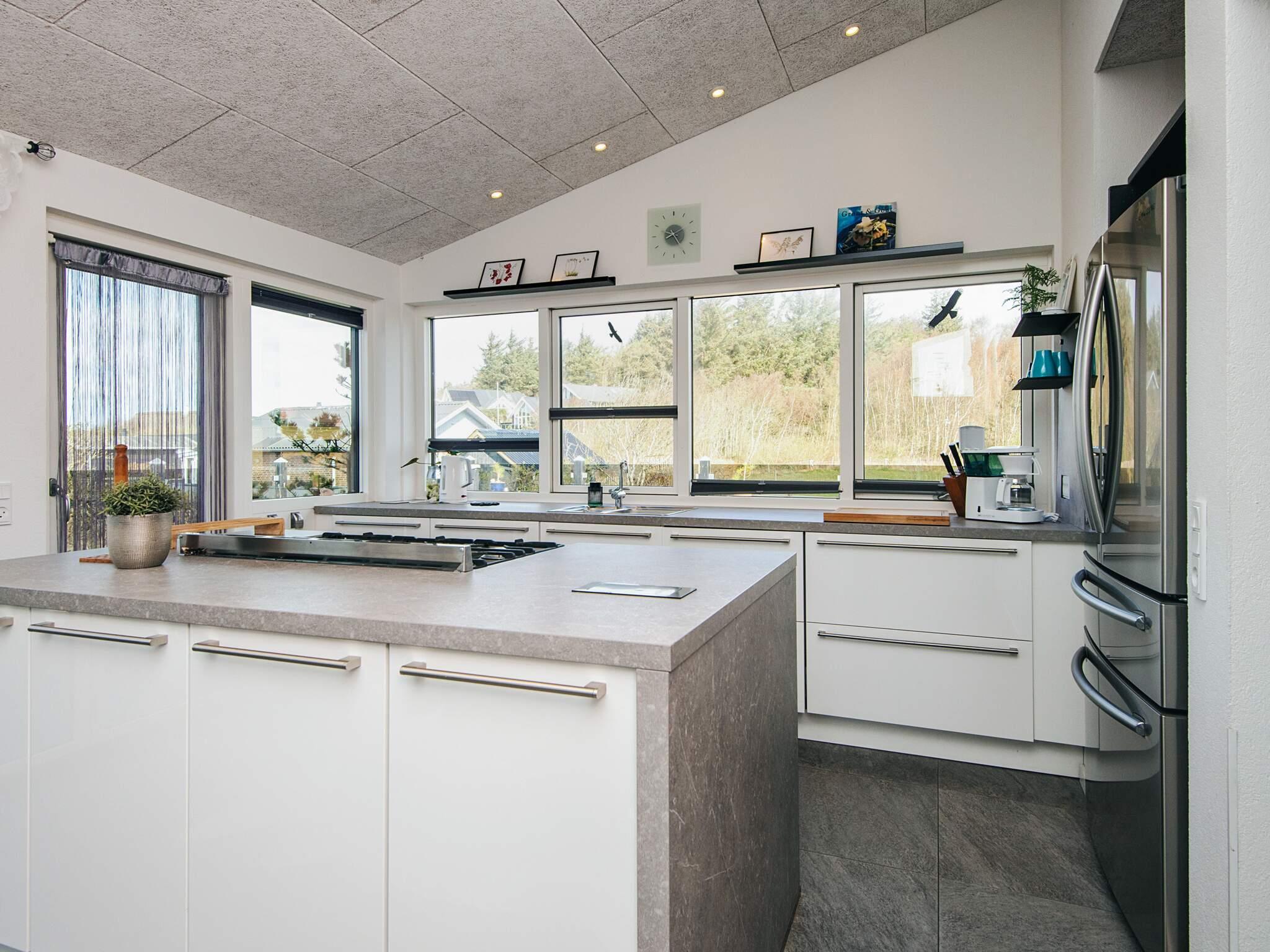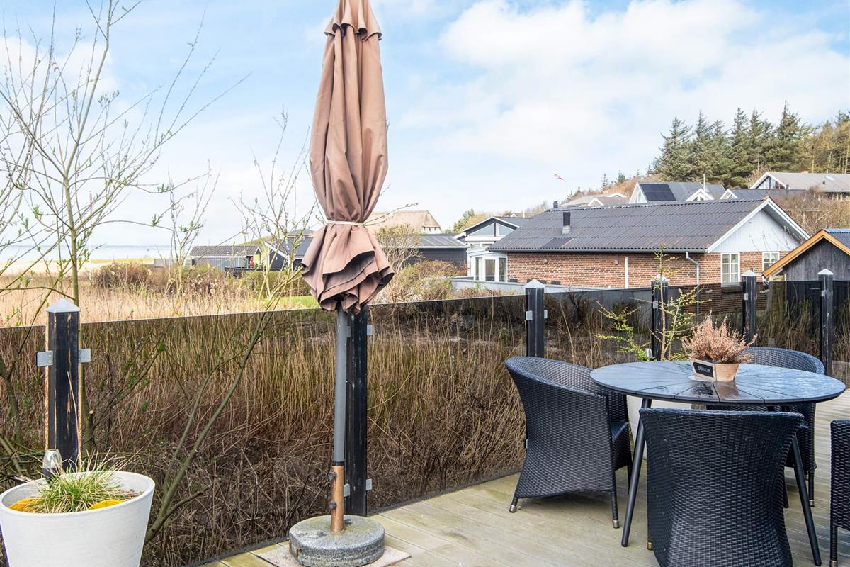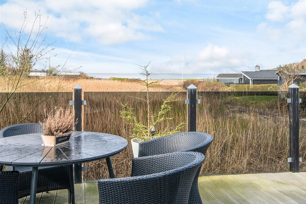 Dieses erhöhte Ferienhaus bietet eine fantastische Lage mit atemberaubendem Panoramablick über die Ho-Bucht und die Insel Fanø. Von der Terrasse, dem Wohnzimmer und sogar der Küche aus genießen Sie die wunderschöne Naturlandschaft und das sich ständig verändernde Licht über dem Wasser. Die Umgebung schafft eine einzigartige Urlaubsatmosphäre, in der Sie sich entspannen und erholen können.