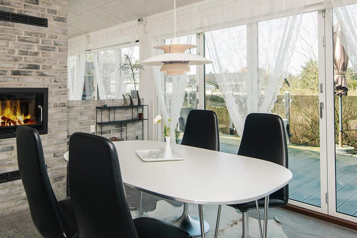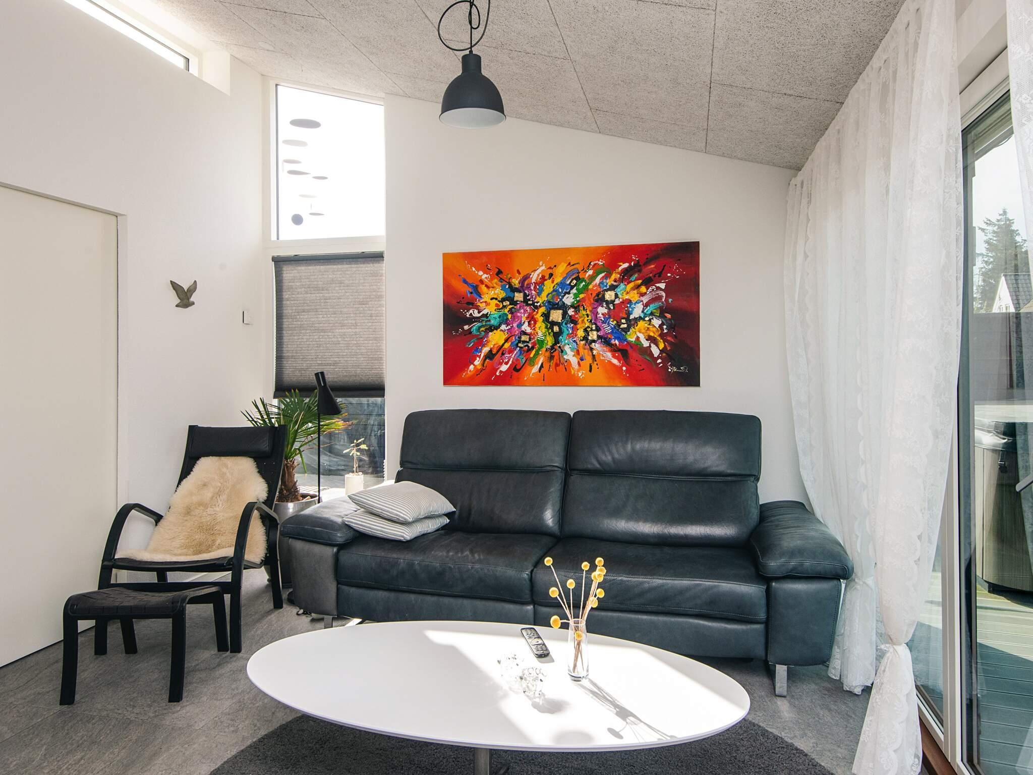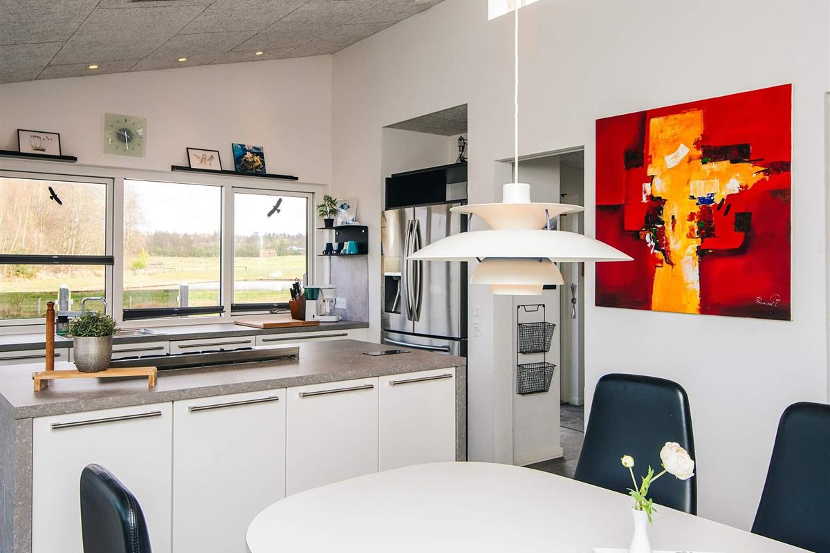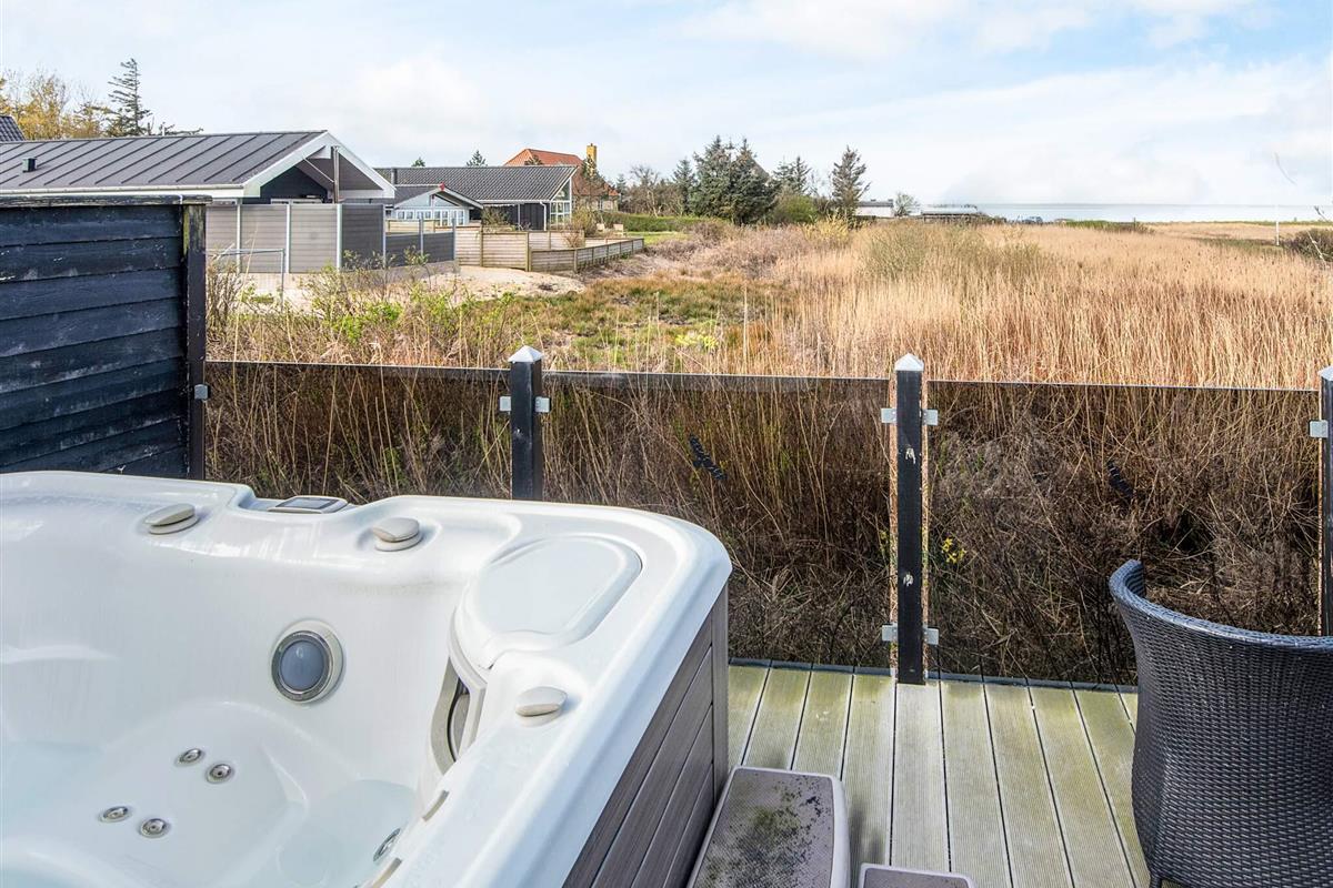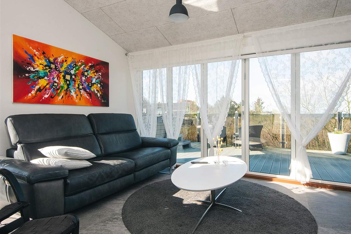 Dieses erhöhte Ferienhaus bietet eine fantastische Lage mit atemberaubendem Panoramablick über die Ho-Bucht und die Insel Fanø. Von der Terrasse, dem Wohnzimmer und sogar der Küche aus genießen Sie die wunderschöne Naturlandschaft und das sich ständig verändernde Licht über dem Wasser. Die Umgebung schafft eine einzigartige Urlaubsatmosphäre, in der Sie sich entspannen und erholen können.