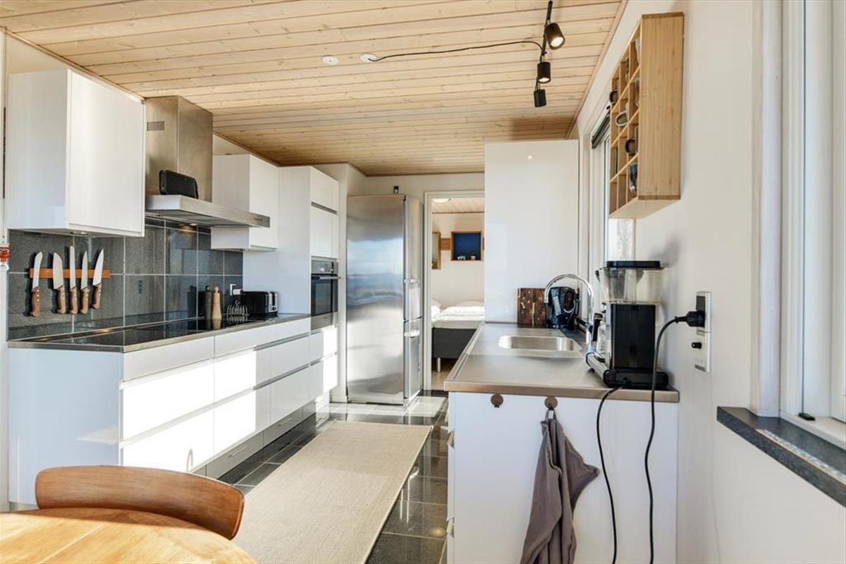 Bei diesem Ferienhaus verbringen Sie Ihren Urlaub in einem einzigartigen und unverwechselbaren Naturgebiet, das durch Heide, Wälder und weite, offene Flächen geprägt ist. Sjelborg liegt an der Ho Bucht und erwartet Sie mit einem schönen Strand an dem auch der sogenannte Marbækstien vorbeiläuft - ein wunderschöner Wanderweg auf dem Sie entlang des Wassers bis zur Mündung des Flusses Varde Å gelangen. Am Ende des Weges können Sie den Mythuegård besuchen, auf dem Ihnen viel Wissenswertes über die Geschichte und die Natur der Gegend vermittelt wird. Die Ausstellung “Hvor å, hav og mennesker mødes” ist täglich von 10:00 bis 12:00 Uhr geöffnet. Der Eintritt ist kostenlos. Wenn Sie Ihren Weg noch weiter fortsetzen möchten, erreichen Sie Hjerting, einen Ort mit einer schönen Strandpromenade und Bademöglichkeiten. In Hjerting befinden sich außerdem ein Badehotel, ein Eiskiosk und mehrere kleiner Geschäfte. Die Waldgebiete von Sjelborg und Marbæk gehen nahezu fließend ineinander über und empfangen Sie mit zahlreichen markierten Spazierwegen. Für kulinarische Erlebnisse sorgt das Restaurant Sjelborg im gleichnamigen Ort. Auf der guten Karte des Restaurants werden Ihnen verschiedene köstliche Menüs angeboten. Golfbegeisterte Urlauber dürfen sich in der Nähe von Sjelborg über die 18-Loch-Golfplätze des Breinholtgård Golfklubs und des Esbjerg Golfklubs freuen. Beide Clubs verfügen über ein Restaurant und bieten Ihnen eine fantastische Aussicht. Für eine Tour an die offene Nordsee bietet sich der rund 30 Minuten entfernt gelegene Badeort Blåvand an. In Blåvand laden gute Restaurants, Cafés und eine Vielzahl ganzjährig geöffneter Boutiquen und Läden zum Bummeln und Verweilen ein. Einer der allerbesten Strandabschnitte der Westküste erstreckt sich über rund 15 Kilometer von Skallingen im Süden bis zum Leuchtturm von Blåvand im Norden. Einen Ausflug in die Stadt Esbjerg möchten wir Ihnen ebenfalls ans Herz legen. Das erste was Sie auf Ihrem Weg in die Stadt sehen werden, sind die großen Skulpturen “Mennesket ved Havet” von Svend Wiig Hansen. Die bekannte Skulptur besteht aus vier imposanten Menschen, die am Strand sitzen und auf das Meer blicken. Genau gegenüber der großen Skulptur befindet sich das interessante “Esbjerg Fiskeri- og Søfartsmuseum” mit wechselnden Ausstellungen rund um das Meer und die Seefahrt und der Möglichkeit bei der täglichen Seehundfütterung zuzuschauen. Das Stadtzentrum bietet mit seinen unzähligen Geschäften, dem Kunstmuseet, dem Musikhuset und dem Veranstaltungszentrum Tobbaken etwas für jeden Geschmack. Die fünftgrößte Stadt des Königreichs überzeugt außerdem mit einer sehr guten Auswahl an Restaurants und jeder erdenklichen Art von Unterhaltung.
