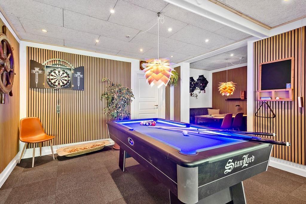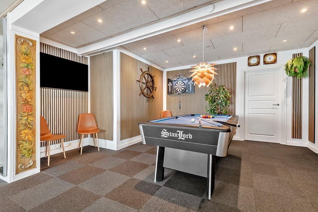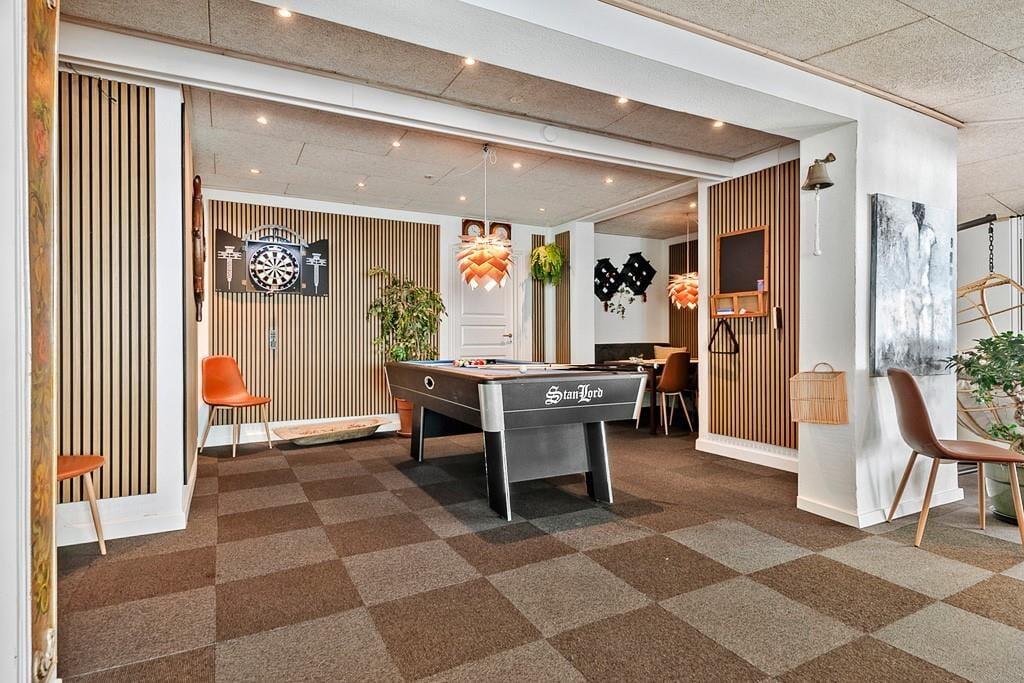 Das Leben im Freien ist am Sjelborg Strandvej 40 etwas ganz Besonderes. Von der Terrasse aus kannst du den Panoramablick über das Wasser genießen, der sich je nach Wetter und Jahreszeit verändert, und wenn der Abend hereinbricht, erlebst du die Sonne in den schönsten Farben hinter dem Horizont versinken. Das Badefass wird schnell zu einem beliebten Treffpunkt, an dem du im warmen Wasser entspannen und die Stille sowie den Blick auf das Meer genießen kannst. Die Terrasse lädt zu Sommerabenden unter freiem Himmel, entspannten Momenten mit einem Glas Wein oder ruhigen Augenblicken ein, in denen du den Klängen des Wassers und der Natur lauschst. Wenn die Energie reicht, steht der Aktivitätsraum mit Darts und Billard bereit, sodass die Urlaubstage auch nach Einbruch der Dunkelheit mit Gemütlichkeit und freundschaftlichem Wettbewerb ausklingen können.