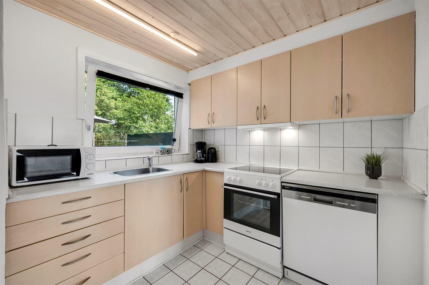 De keuken is uitgerust met koelkast Er zijn 4 keramische kookplaten, heteluchtoven, magnetron en vaatwasser.