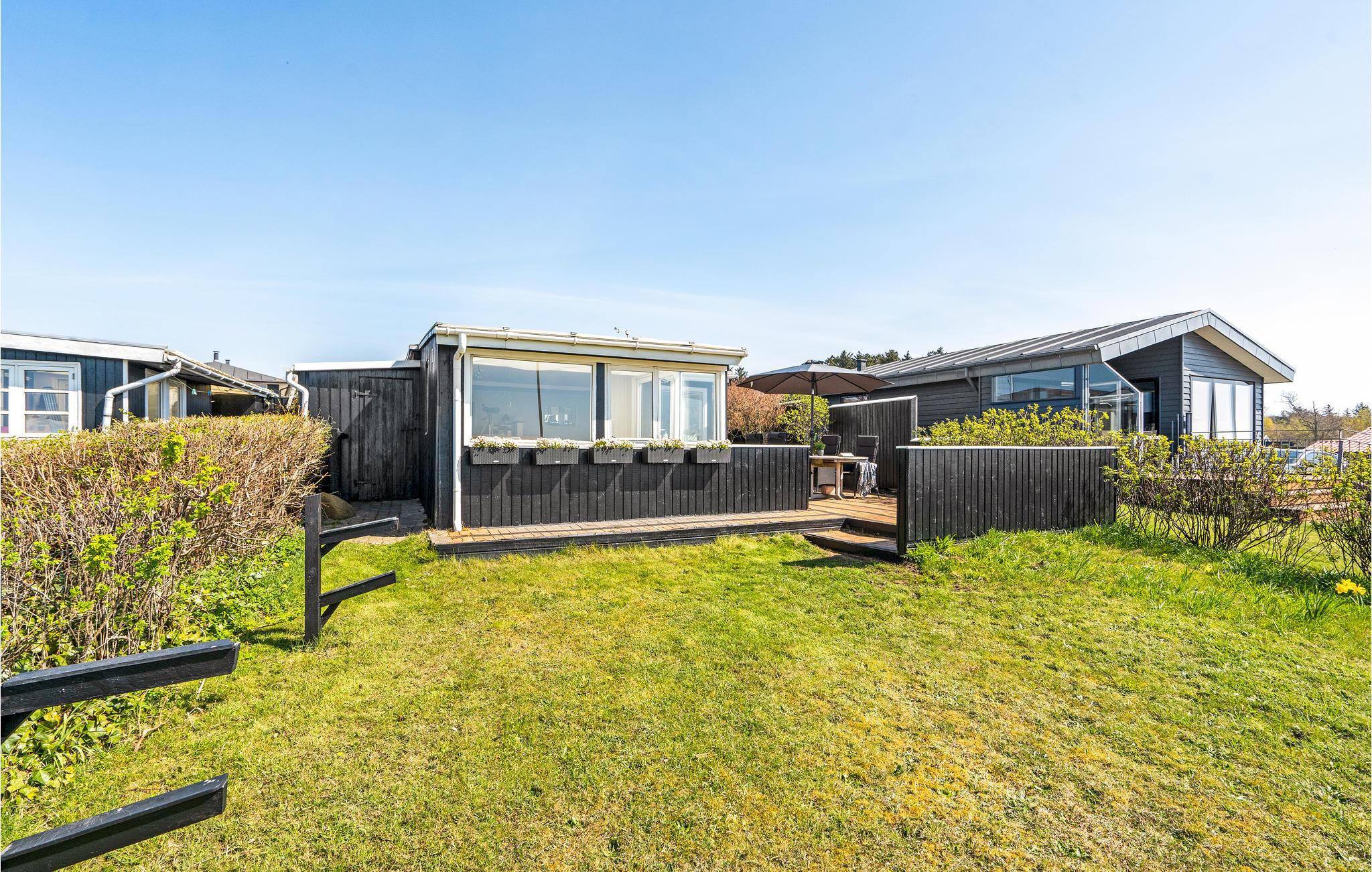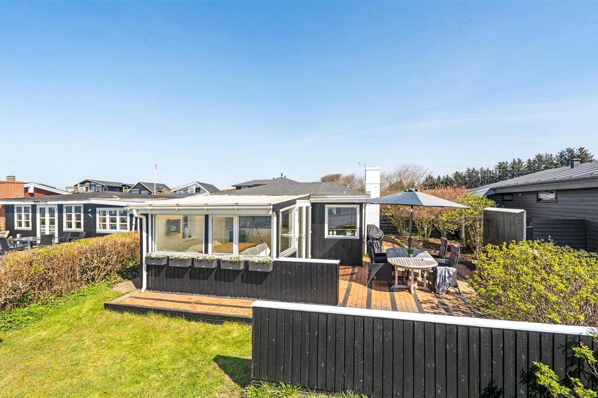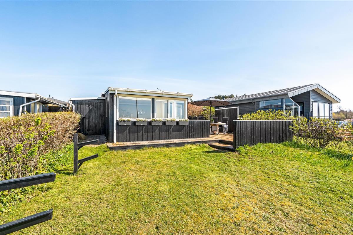 Het huis ligt in een gezellig, klein vakantiehuisgebied, op loopafstand van de strandpromenade van Hjerting.