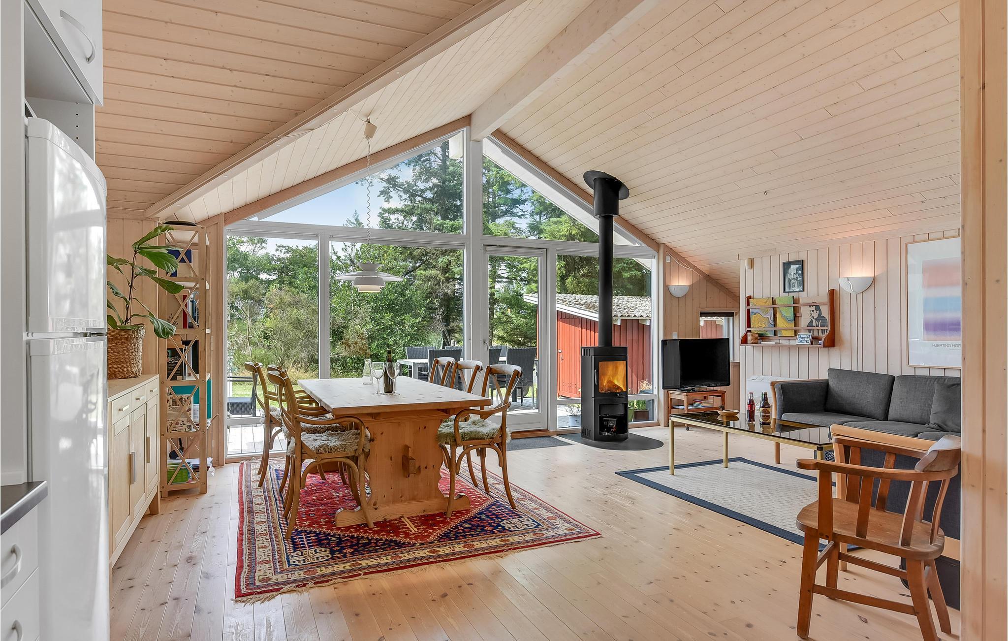 Het centrum van het huis is de open woonruimte met eettafel, zithoek en open keuken, van waaruit u een prachtig uitzicht heeft op de tuin. Ontspan hier voor de open haard met een spannend boek of verzamel de familie en vrienden voor spelletjesavonden. Verder heeft u de beschikking over twee slaapkamers en een badkamer.