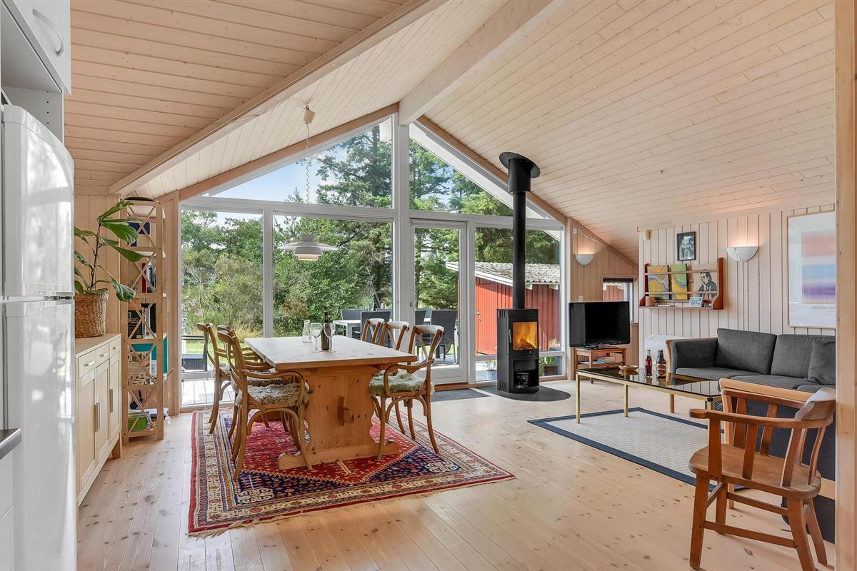 Het vakantiehuis ligt in een gezinsvriendelijke omgeving. De zee en het zandstrand van Sjelborg bereikt u al na ongeveer 300 meter. Esbjerg met winkels, gastronomie en cultuur ligt op korte rijafstand. In de buurt kunt u golfen en op zalm vissen. Goede wandel- en mountainbikeroutes liggen voor de deur.
