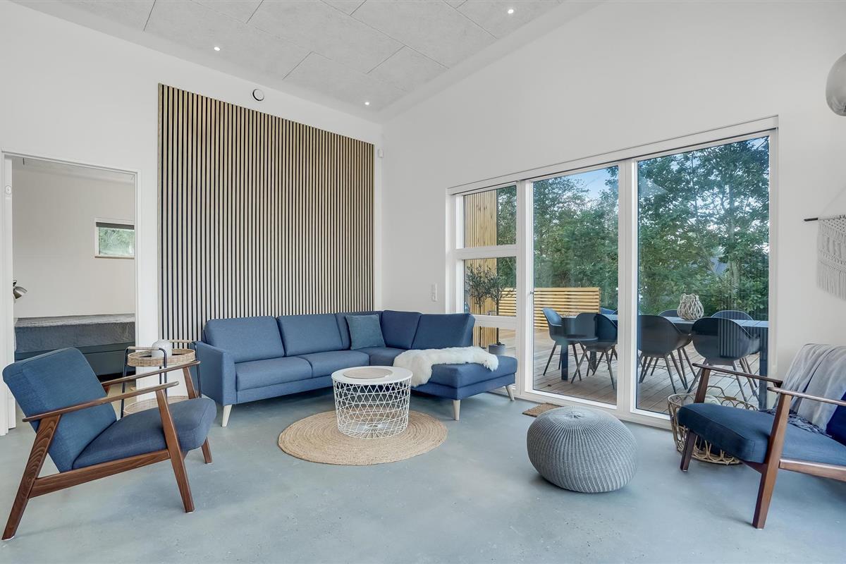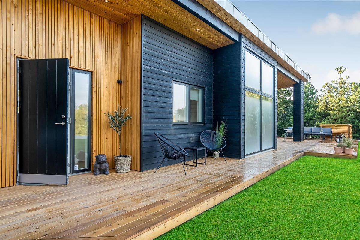 Modern vakantiehuis nabij strand met luxe voorzieningen en tuin voor een ontspannen verblijf.