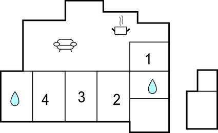 Badkamer (nr. 2) - Toilet: warm en koud water. Douche