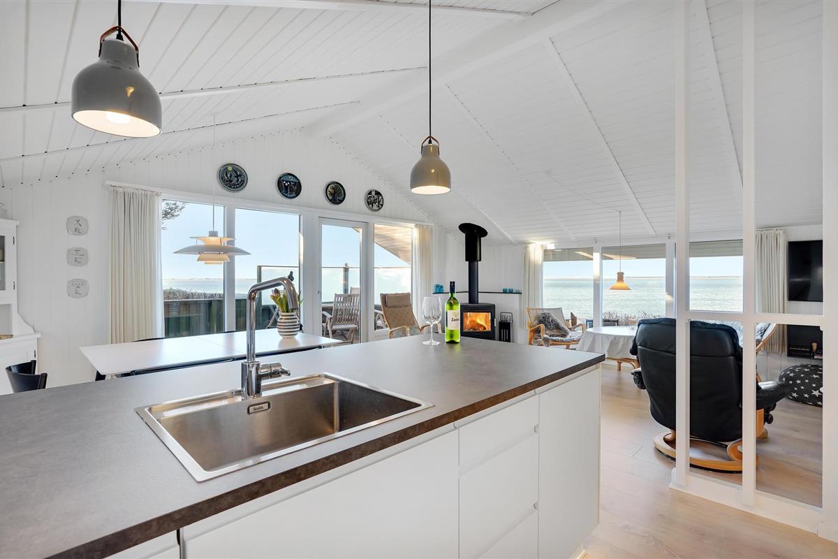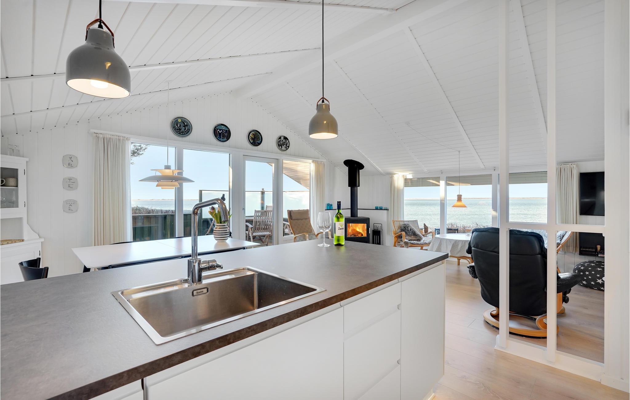 Modern vakantiehuis in Esbjerg met panoramisch zeezicht en houtkachel, ideaal voor een ontspannen verblijf.