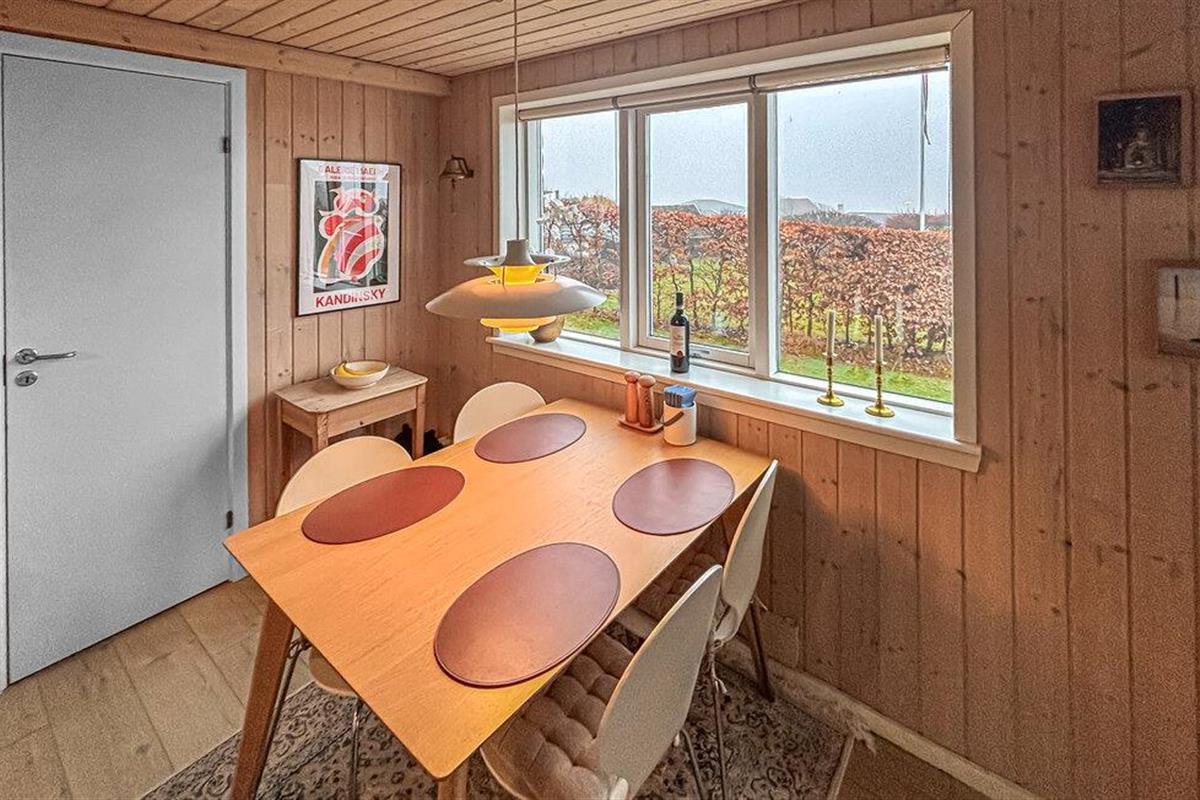 De woonkamer is smaakvol ingericht en biedt met zijn comfortabele bank, fauteuils en houtkachel een warme sfeer om samen tijd door te brengen. Maak het gezellig voor het knapperend haardvuur of neem plaats aan de ronde salontafel en voer stimulerende gesprekken. Grote ramen laten veel licht binnen en bieden uitzicht op de tuin. Bereid je maaltijden in de functioneel ontworpen, open keuken en gebruik de eethoek bij het raam voor een ontspannen ontbijt of diner samen.