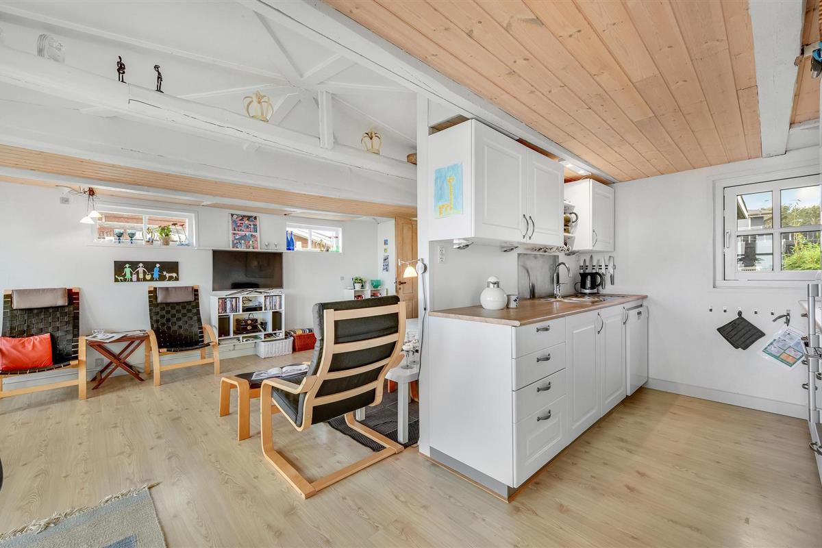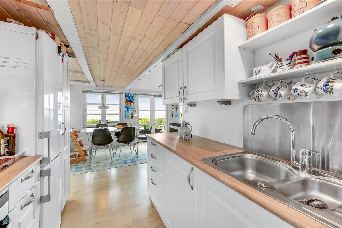 Zeer gezellig vakantiehuis met persoonlijke inrichting. De lichte keuken-woonkamer heeft zichtbare plafondbalken. Een huis op een unieke locatie in Ho Bay en geniet daarom ook van een panoramisch uitzicht op zee. Het perceel is zeer oneffen. In de buurt staan veel kleine huisjes met een persoonlijke stijl. Allen hebben een prachtig uitzicht op de zee en de scheepvaartlijn naar de haven van Esbjerg. Een echt uniek vakantiehuis in een gezellige stijl en niet ver te voet van de beste ijswinkel in de omgeving en het Hjerting Badehotel. U kunt ook zwemmen in Ho Bay.