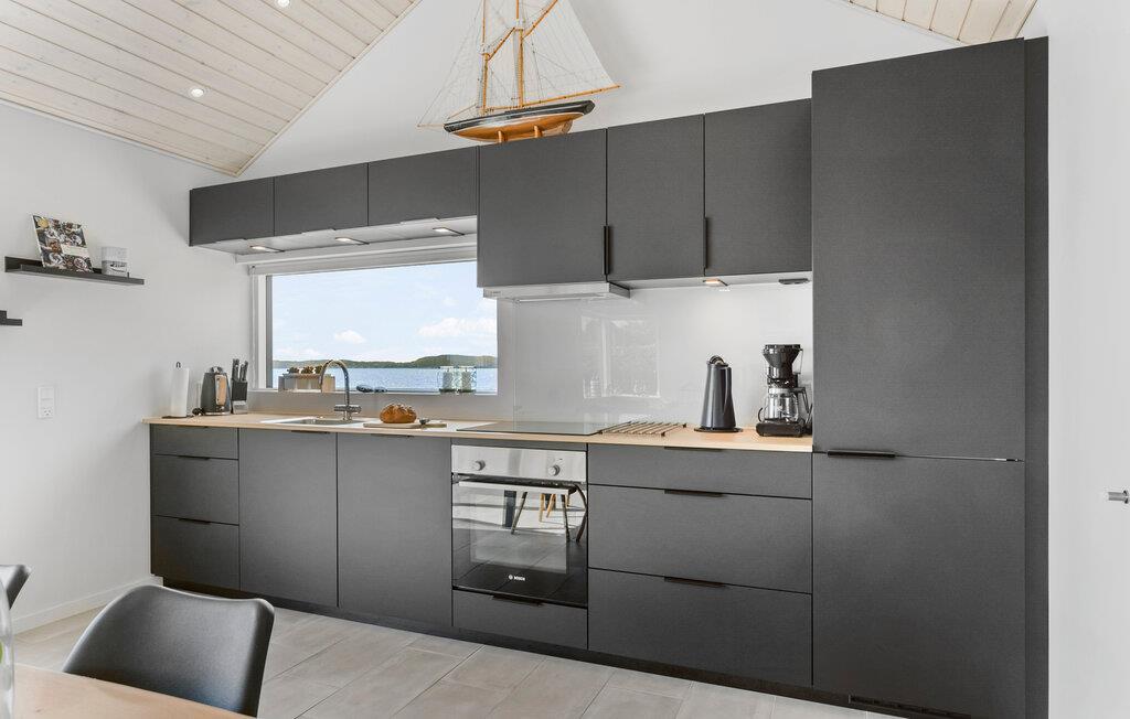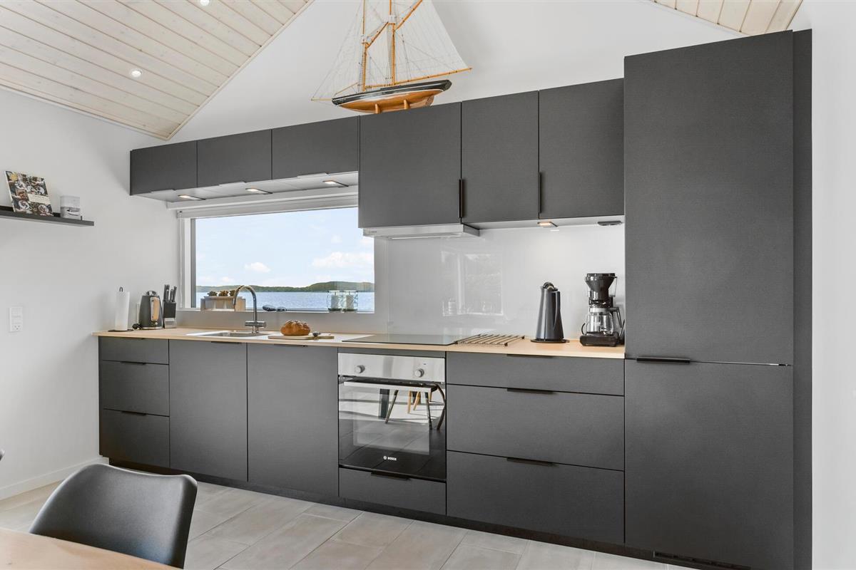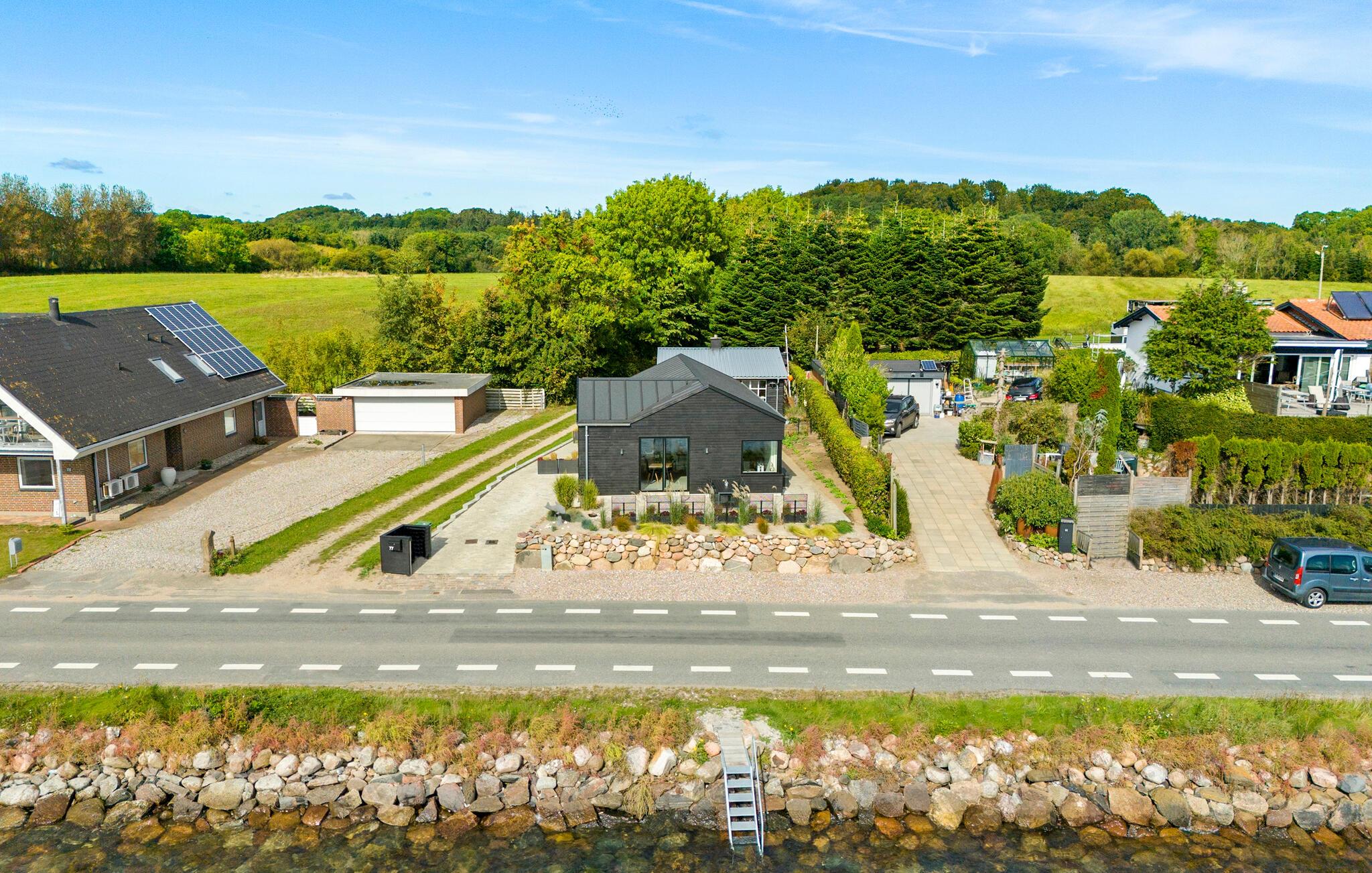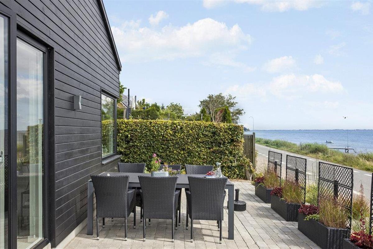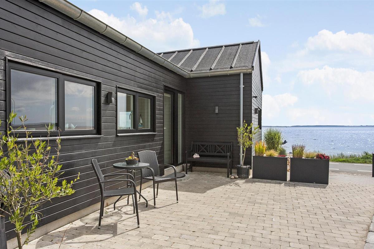 Je architectonisch ontworpen vakantiehuis ligt direct aan de oever van Langelandsbelt. Het moderne huis biedt niet alleen een adembenemend uitzicht op zee, maar ook een stijlvol en comfortabel interieur dat niets te wensen overlaat. Het huis maakt indruk met zijn elegante, zwarte houten gevel en het harmonieus ontworpen terras, dat direct op het water uitkijkt. Hier kun je genieten van de frisse zeebries terwijl je buiten eet of gewoon de rust en het panoramische uitzicht in je opnemen. De nabijgelegen zwemtrap geeft je direct toegang tot de zee, zodat je op elk moment een verfrissende duik kunt nemen.