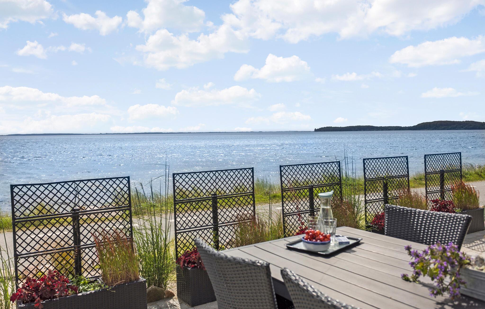 Ervaar het fantastische uitzicht op zee vanuit dit stijlvolle vakantiehuis op het eiland Funen.