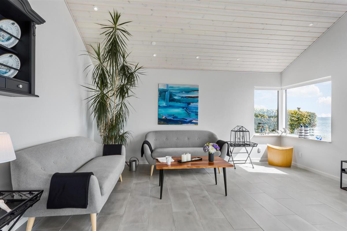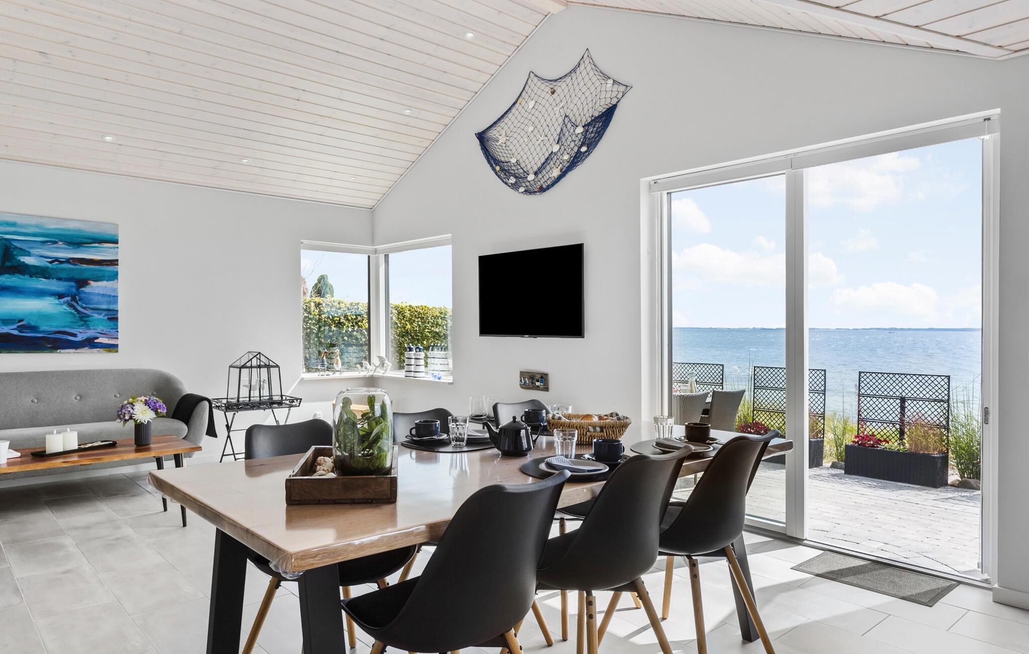 Stijlvol vakantiehuis aan zee op Funen met panoramisch uitzicht en modern interieur.