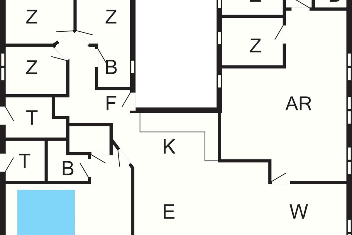 Dieses Feriendomizil ist sehr geräumig und überdurchschnittlich umfassend ausgestattet und besteht aus zwei separaten Schlafbereichen mit insgesamt sieben Schlafzimmern. Jeder dieser Bereiche verfügt über ein eigenes Bad mit Dusche, zudem hat der Poolbereich ein eigenes Bad. Darüber hinaus findet man oben unter dem Dach einen offenen Hems mit vier einfacheren Schlafplätzen.