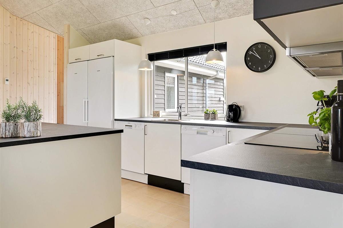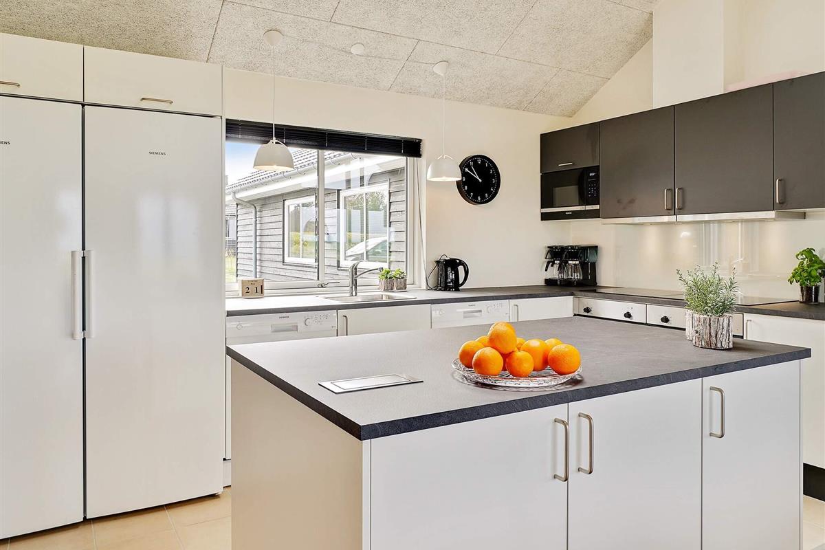 Den Mittelpunkt des Hauses bildet der geräumige Küchen-/Wohnbereich mit Ess- und Sitzecke, der geschmackvoll eingerichtet wurde. Dort stehen auch ein Flachbild-Fernseher, Blu-ray Player, PlayStation 4 und ein Holzofen für gemütliche Abende bereit. Schnelles Internet ist ebenfalls vorhanden.