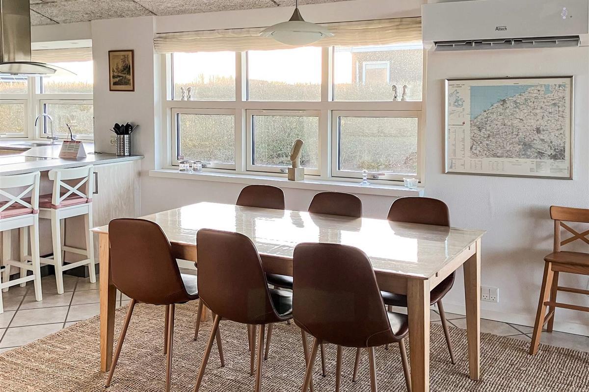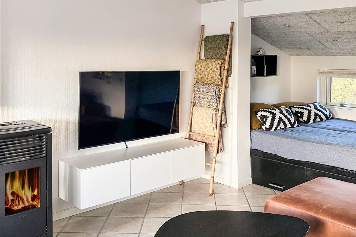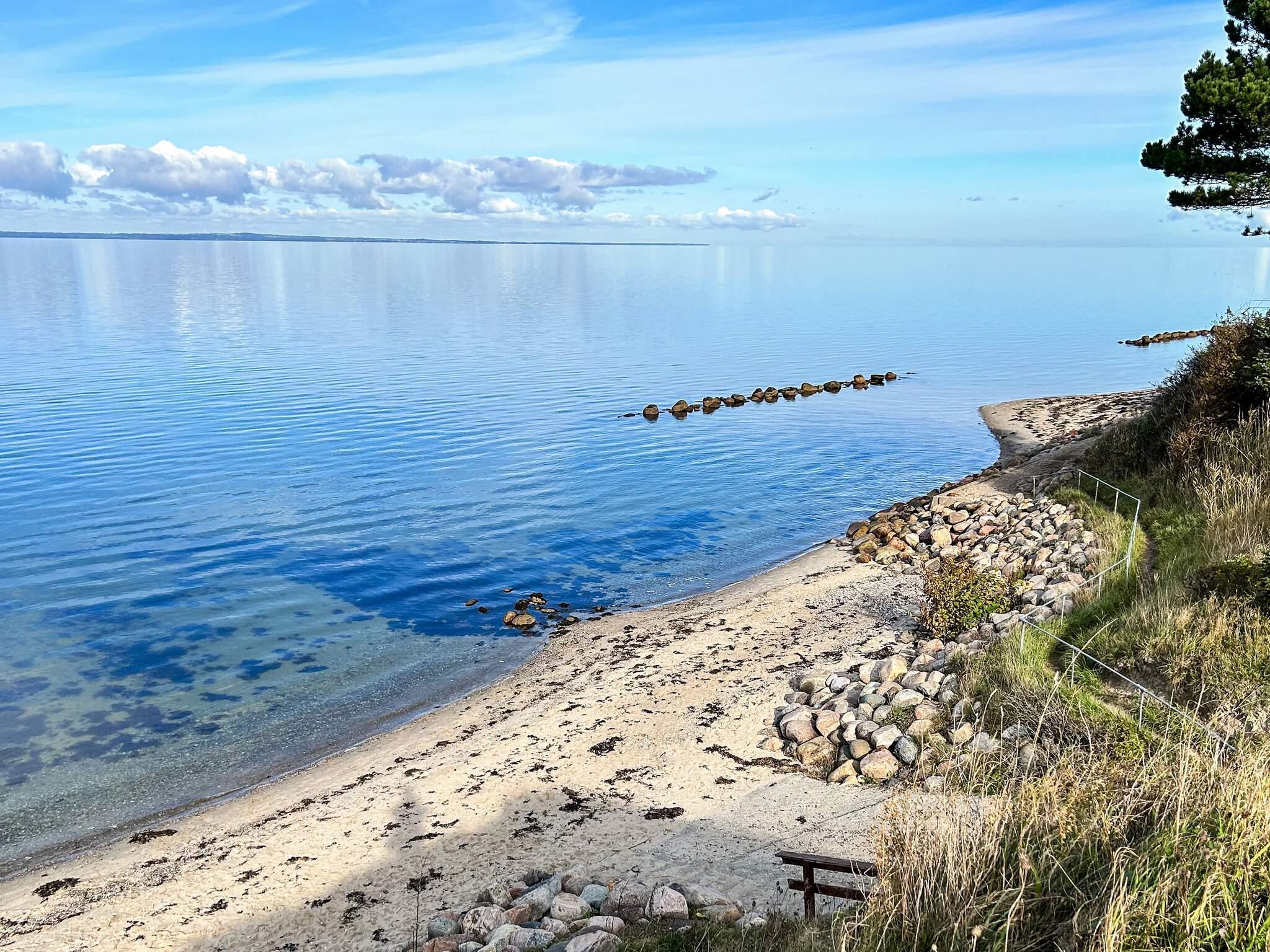 Dieses Ferienhaus ist mit hochwertigem Mobiliar eingerichtet. Es gibt einen hellen, kombinierten Wohn- und Essbereich, von dem aus man direkt auf die offene, einblickfreie Terrasse gelangt. Von dort hat man Ausblick bis zum Wasser in der Bucht Båring Vig. Das Wohnzimmer ist u.a. mit einem Flachbildfernseher und einer schnellen Internetverbindung ausgestattet, die Ihnen Gelegenheit bietet, Ihre eigenen TV-Anbieter zu streamen. Zudem ist ein Pelletofen vorhanden, Pellets findet man nebenan im Schuppen.