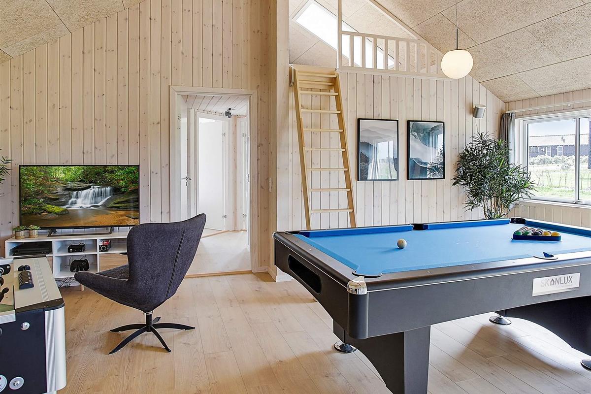 Nur etwa 500 m vom Wasser am Skåstrup Strand liegt dieses Ferienhaus. Es verfügt über einen 18 m² großen Swimmingpool mit Gegenstromanlage, einen Whirlpool und eine Sauna. Außerdem gibt es einen Aktivitätsraum, in dem Sie sich gegenseitig zu einer Runde Billard, Kicker, Tischtennis oder elektronischem Dart herausfordern können.